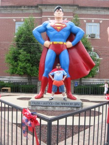 I first found out about Metropolis and their yearly Superman Celebration by surprise on a road trip to Wonderfest in Louisville, KY back in early June, 1999. My friend Dave Beaty’s parents heard about our trip and since they had planned on heading up to Louisville they offered a ride up with them and his little brother Ronnie in their van. (Dave later told me, “Next time…rental car.” while we were in the van during a thunderstorm in the middle of nowhere, but that’s another story.)