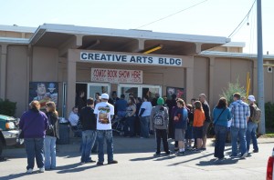 We made good time, and I only had to make one pit-stop before Nashville on our 3hr+ road trip. Almost a new record for me and my bladder! We had our GPS directions get us a bit lost after getting to Nashville, but we got our bearings and after a couple quick emergency bat-turns and one ridiculously long red light we found the fairgrounds a few minutes later. Didn’t realize we’d have to pay for parking, but I had a fiver in my pocket so we paid the lady and motored on up the hill to the convention building. A line had already formed outside of the doors, and as we walked up they started letting folks in. I walked past the line and inside and as I entered I told a couple folks that I wasn’t skipping- just needed to find out where we were supposed to set up. One of the guys in line told me, “You’re late!” Yep, the extra time I thought we would have for a quick set up was eaten up by our scenic tour of that part of town. I found Marc Ballard, the show’s promoter at the front table and he pointed Nicki and I towards the middle of the space and said my name would be on the table there, which it was and right behind Kevin and Antone’s table who were already setting up. After a couple trips to our car which was parked in “the back forty” we started setting up, too.