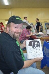 Sean T had his sketchbook with him and asked me to do a sketch for him. Since it was a horror show, I was wearing a Bride of Frankenstein shirt, and Sean likes “Bad Girls” I drew a Bride sketch while sitting at my table. The only sketch I did all day. I usually don’t do them because it’s hard to draw at shows and keep an eye on the table. Even with Nicki there helping I still have to stop and talk to folks, and some people won’t stop to talk if they think you’re too busy.