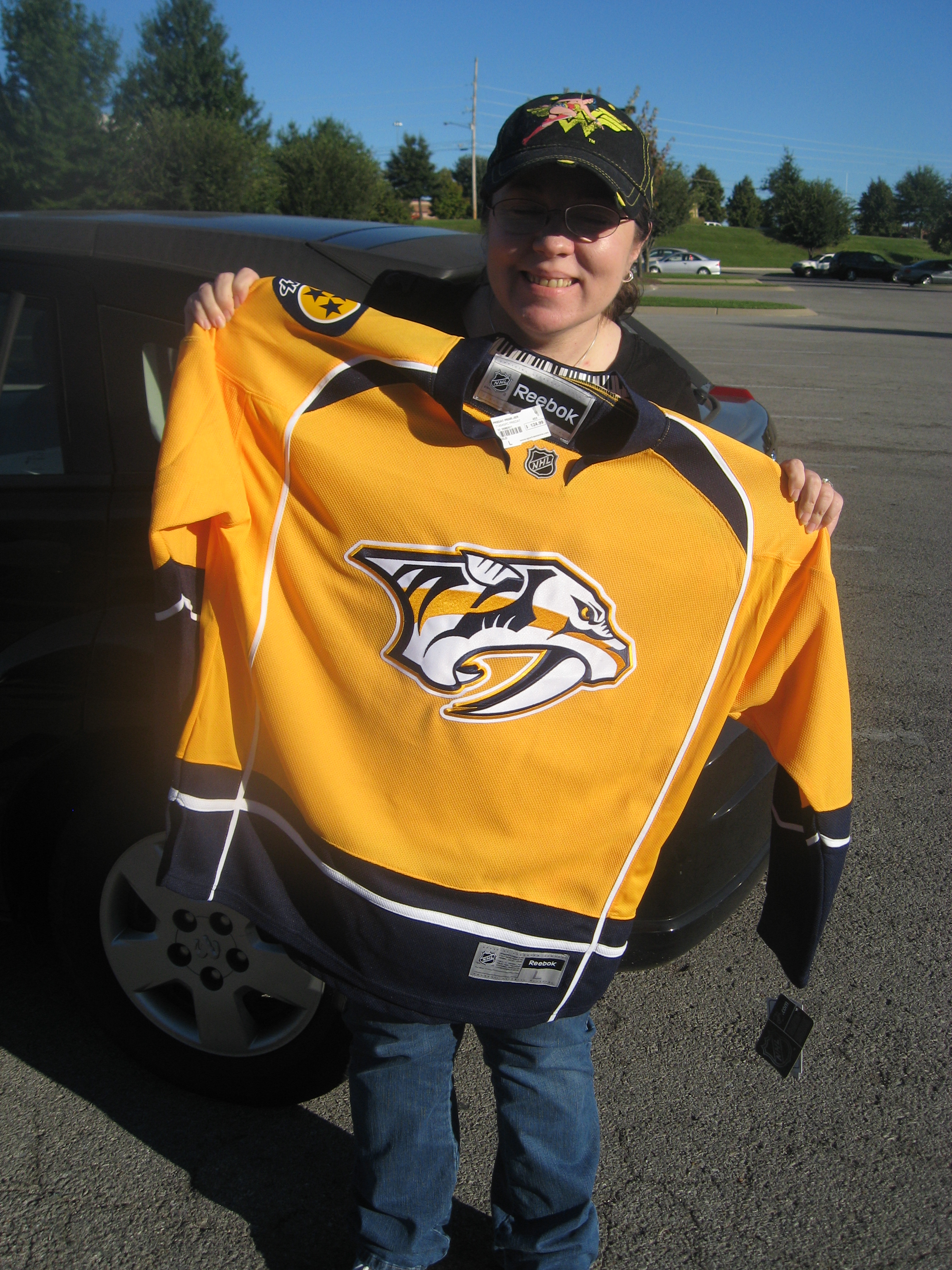 We found out a bit too late about the PredsFest 2011 (Nashville Predators Fan Fest) going on at the same time as the comic show, but Nicki was able to stop and pick up a new gold jersey before we left town. Also grabbed some Greek food near the shopping center for dinner before hitting the road back home. Those both made her happy!