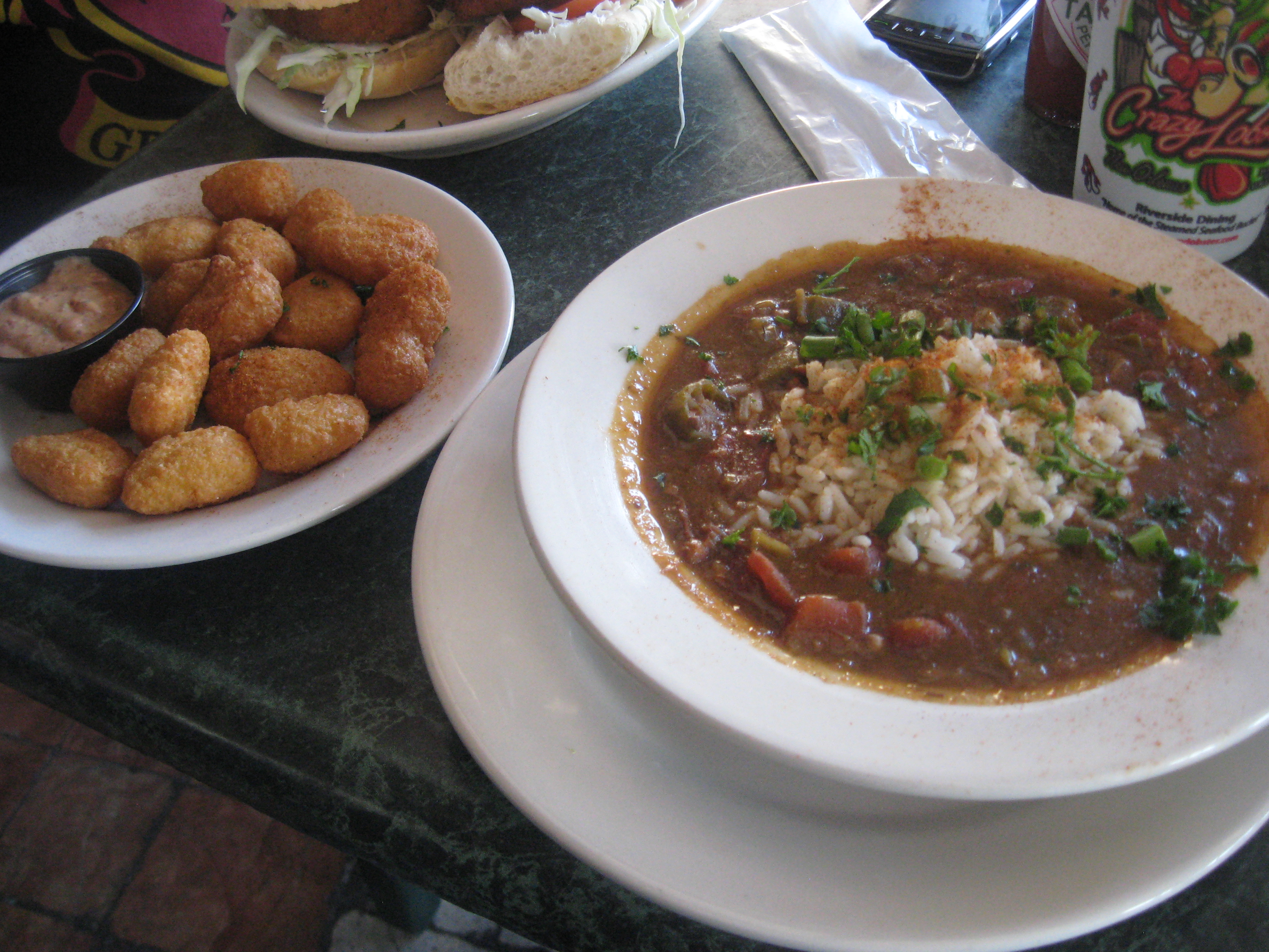 We were a bit hungry by this time. We’d missed breakfast since we slept in a bit. Halloween was the night before and we got in a wee bit late. We had a few wedding cupcakes with us on the trip and that was what we had before heading out that morning. We decided to have lunch by the river at Poppy’s The Crazy Lobster. We sat right down, but it did take a bit to get waited on. We kept ourselves entertained by watching the Algiers Ferry dock and then head back across the river for more passengers and cars (free for pedestrians and $1 for cars).