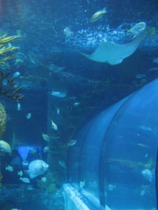 The first aquarium we encountered was very big and you could walk through the middle of it. I’m a bit claustrophobic but the walkway was wide enough and tall enough for me to not feel closed in, which was very nice. What was even cooler was that it had a bunch of stingrays swimming around in it!