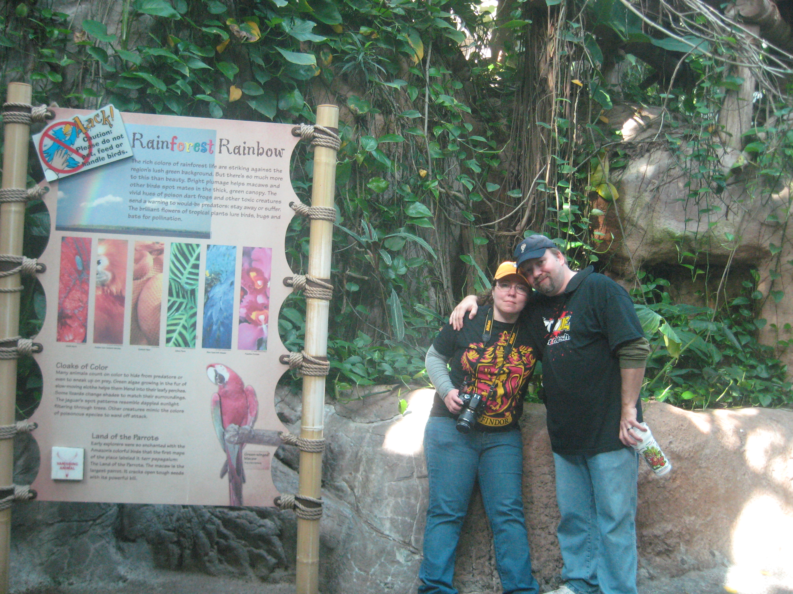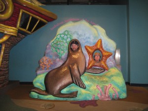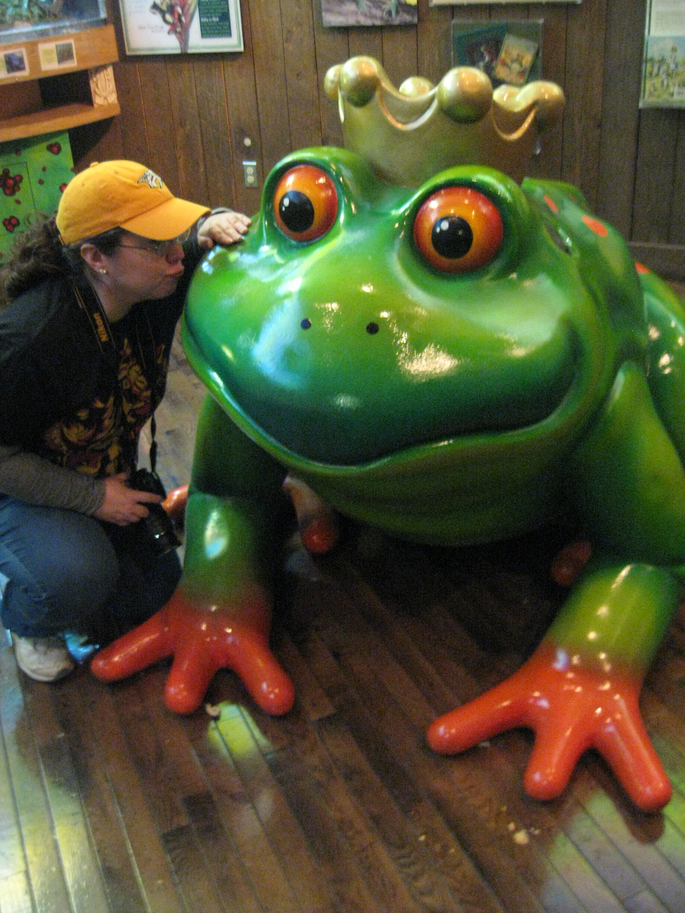 Down that hall was a tank with some otters in it, more wall tanks with various fish, and a frog room. There was a large frog prince in the middle, a Kermit The Frog near the ceiling, some info about frogs on the walls, and some tiny colorful live frogs in terrariums. Nicki was fond of the frog prince- hope she’s not already having second thoughts about our marriage!