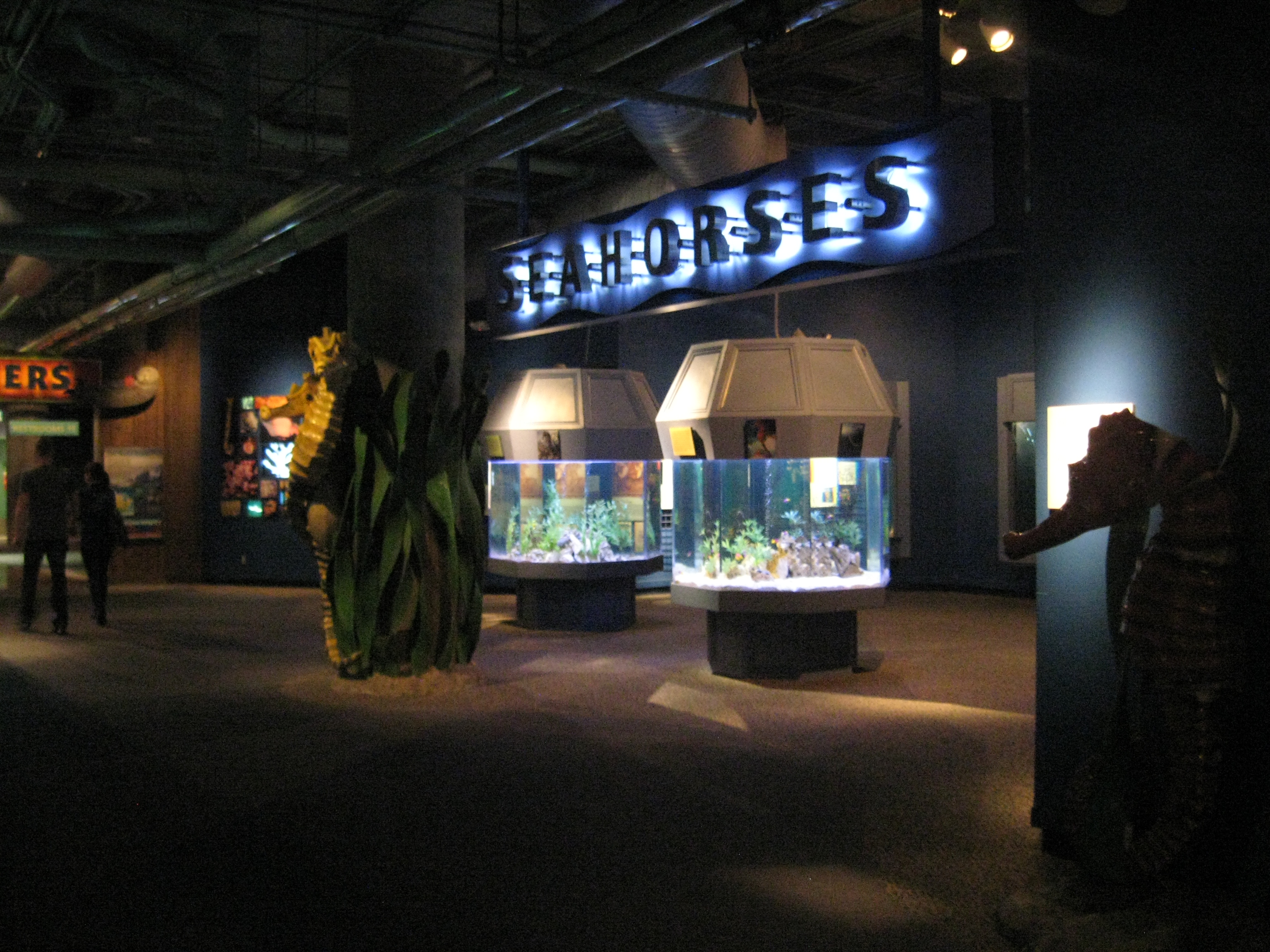 One of my favorite areas in the aquarium was the seahorse exhibit. They were pretty amazing. They had a few different species of seahorses and seadragons there. It was interesting to watch them use their tails to hold onto branches or intertwine with each other.