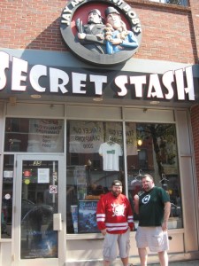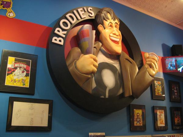 We walked into the Secret Stash and one of the first things I noticed was the giant Brodie’s comic shop logo hanging on the left wall. It was from the movie Jay and Silent Bob Strike Back. Jason Lee stars as Brodie Bruce (seen earlier in Mallrats) and has his own comic shop in the movie. I heard that scene was shot at Jack’s, but not sure.