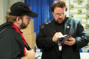 While waiting in line for the Kevin signing in 2005 I met Bryan Johnson– also known as “Steve-Dave” in Kevin’s movies. A jerky comic book shop owner in the movies, really nice guy in person and on the phone- at least when I talked to him. He called me a year or two prior about an order I placed while he was running Kevin’s Secret Stash comic shop in Red Bank. I thanked him for the great customer service, gave him an MSCA comic I had worked on, and then he posed for a pic with me. I didn’t recognize him at first while watching Comic Book Men. His new homeless-wizard-wanna-be-beard look and his “douchebag” attitude midway though the show both made him almost unrecognizable. He managed the Secret Stash in Los Angeles until it closed a few years ago. He’s also written comics and wrote/directed the movie Vulgar. Again, he was a nice guy when I met him. Don’t know if he’s bitter about life, if I just don’t get their Jersey buddy bashing comic shop humor, or if he’s just pouring it on for the camera. Most of the show seemed very staged, like most “reality” shows…