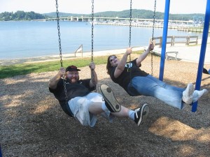 The park wasn’t too far away and in a few minutes we were there just a swingin’. It was a nice park- much busier and warmer than when Holden and Alyssa were there in the movie. Lots of families were there and it looked like they had added a bit more to it than what I’d seen on screen. We were amazed at some of the houses that lined the shoreline. Some looked like very nice summer cottages and others like year round mansions- many had their own boathouse garage connected to them. Some of the boats were bigger than my house! Again, not the Red Bank, NJ that I was expecting.