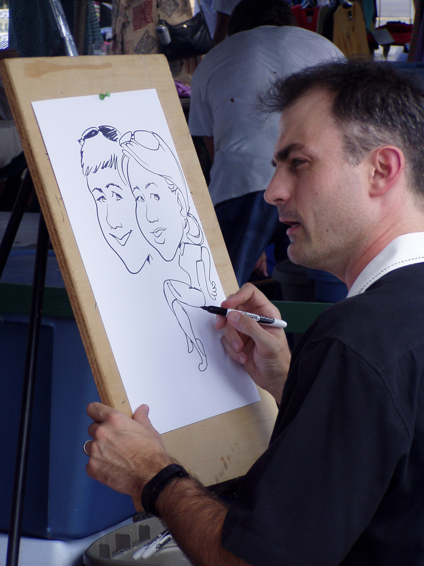 (Greg Cravens doing caricatures at the MSCA booth at the Mid-Sound Fairgrounds.)