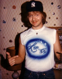 When I wanted to learn how to airbrush I went around town to a few different shops and talked to the artists who worked there. One acted like he was too busy to talk to me. Another answered my questions but didn’t go out of his way to give away any “trade secrets”. The last artist- A.G. Howard, told me where to get some supplies and said he’d like to see some of my work. I went home and painted some quick cartoons and names on a sheet of posterboard. I took it back to the shop the next day and showed him. He liked what I had done but wanted to see some color work, and suggested that I practice on material called Pellon. He told me where to get some practice Pellon and showed me examples of what kind of designs he had done on it. I went by a fabric store and then home to paint. I showed up with my samples and a couple of tees. He told me about a job opening behind the counter at the shop and put in a good word for me. I got the gig and after a few weeks saved up to buy a new double action airbrush- another bit of advice he had given me. I started filling in on his and the other artist’s days off and soon was painting tees full time. Another artist- Greg Cravens, I had met at a local fair a year or so earlier. At the time he looked like a young Charles Manson so I was a bit apprehensive about talking to him. My mom convinced me to, and I’m glad she did. He was very friendly and more than happy to answer any questions I had. Almost 30 years later he’s not only still an art mentor, but is one of my best friends. Thankfully he no longer looks like a serial killer.