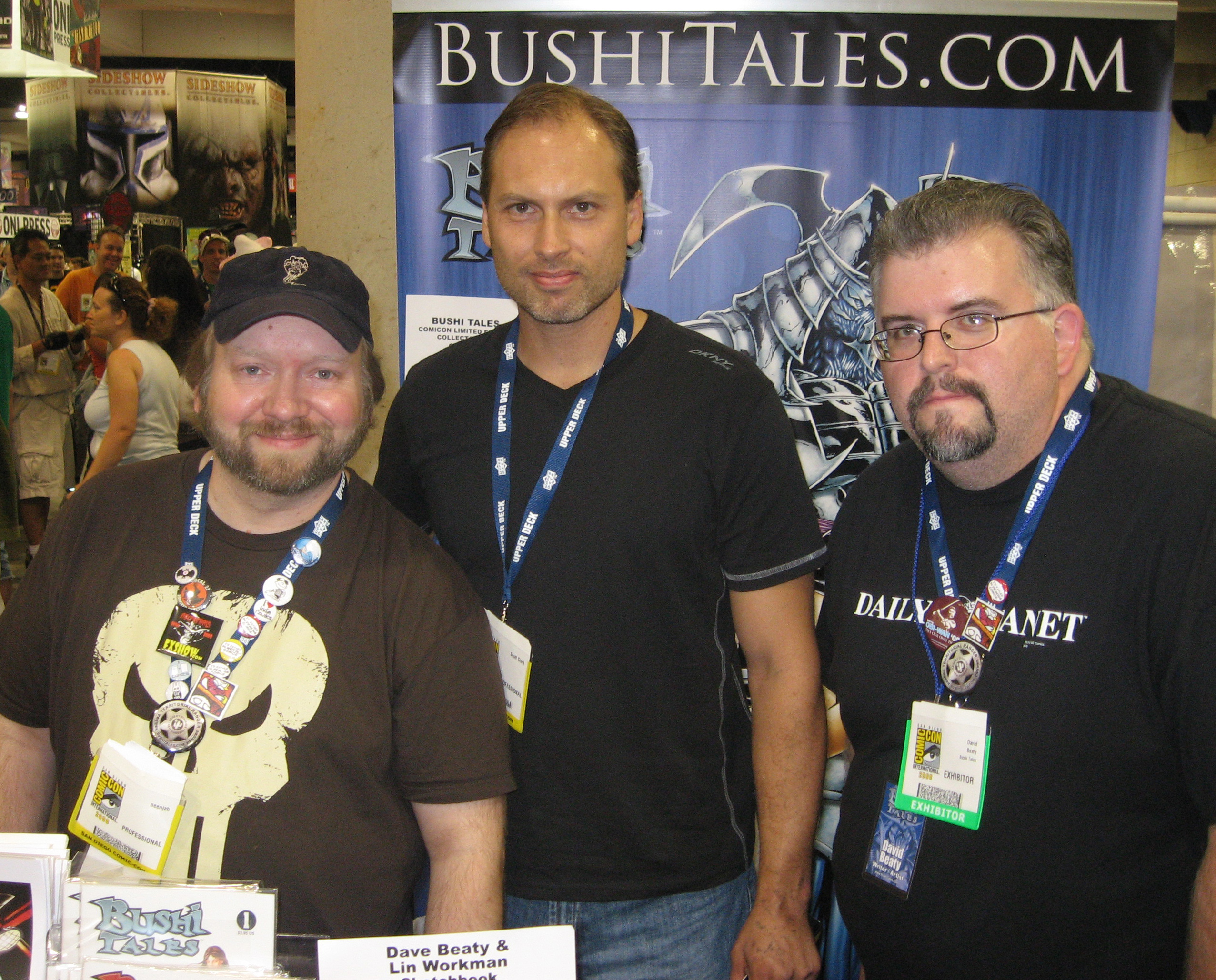 (Me, Scott Clark, and Dave Beaty at the Bushi Tales booth at the San Diego Comic Con– 2007 )