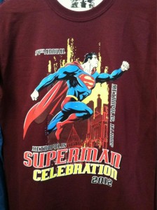 Our first stop in town was the chamber to check in with the celebration staff and pick up the keys to AA&WW and Planet Krypton (the fan film theater space where Tim would be set up and former artists alley space.) The chamber is the headquarters for the celebration staff, and is also an information center and a gift shop. Since the crowds hadn’t hit town yet we did some shopping, which included some items with this year’s celebration design I did. Picked up a t-shirt, coffee mug, button, and free program- as well as a copy of the Metropolis Planet newspaper.