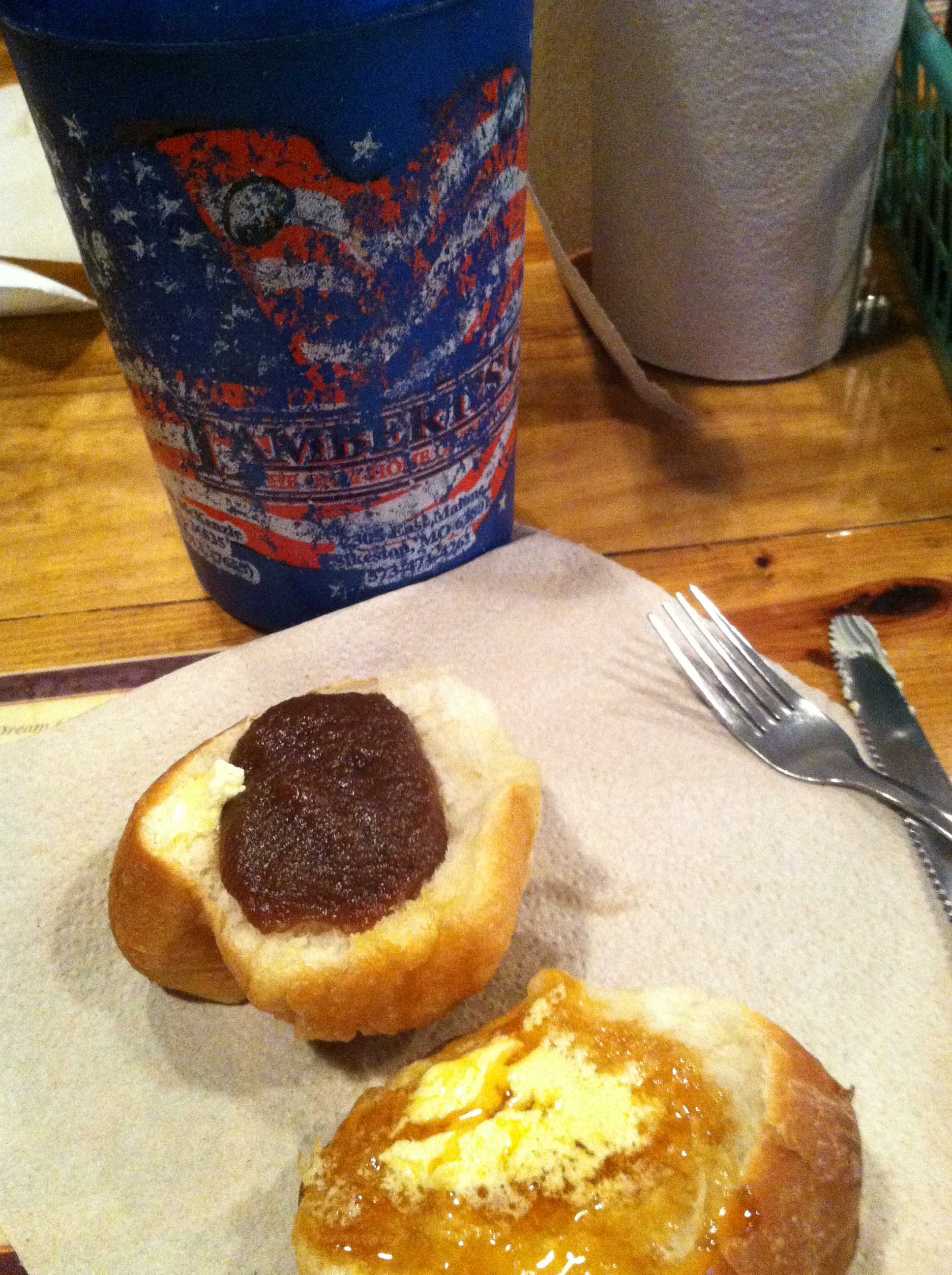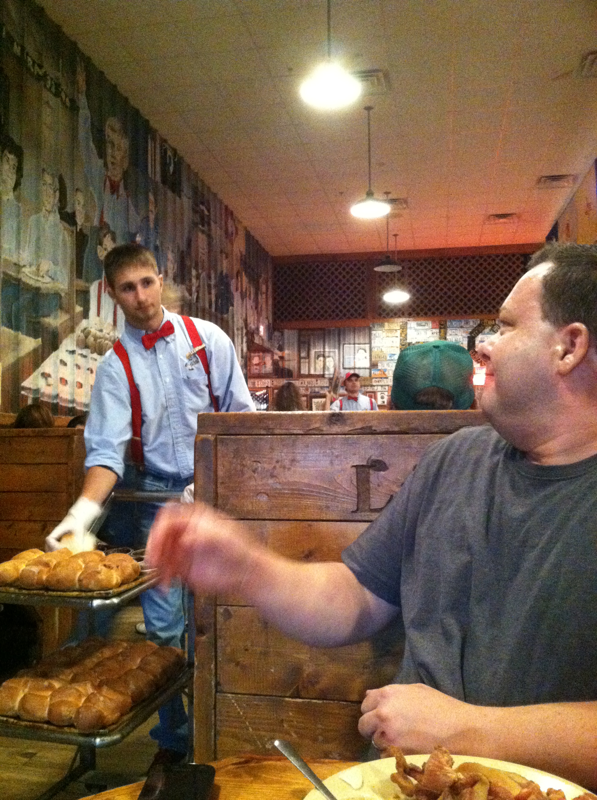 After a couple hours of driving with pastures on either side of us we got to Sikeston, MO and stopped for lunch at Lambert’s Cafe– home of the throwed rolls!