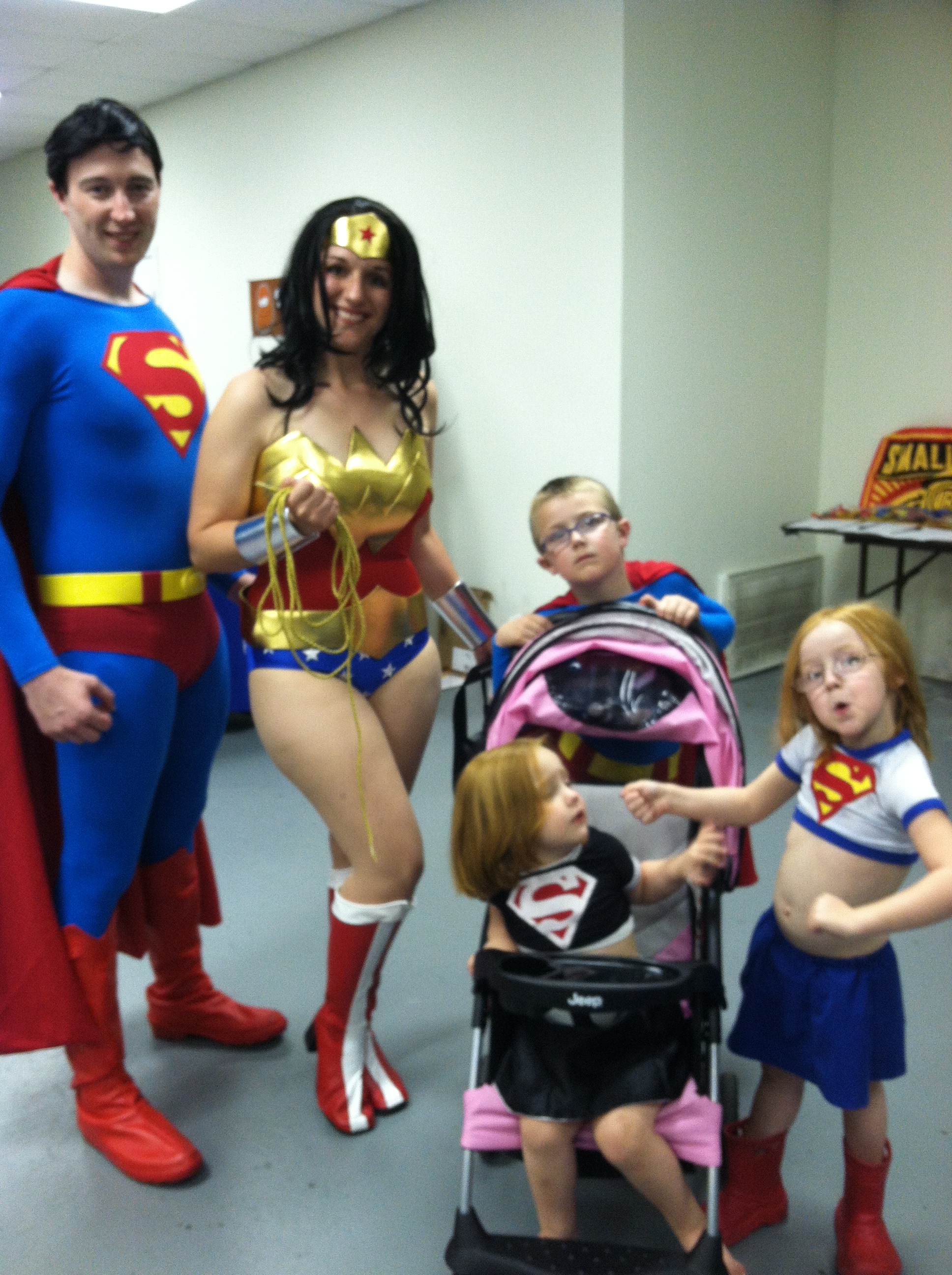 These days some store-bought cloth costumes even come with built-in muscles! But I’m really impressed with the incredible home-made costumes, and families that cosplay together you can see around Metropolis. You never would have gotten my dad to wear tights- especially out in public!