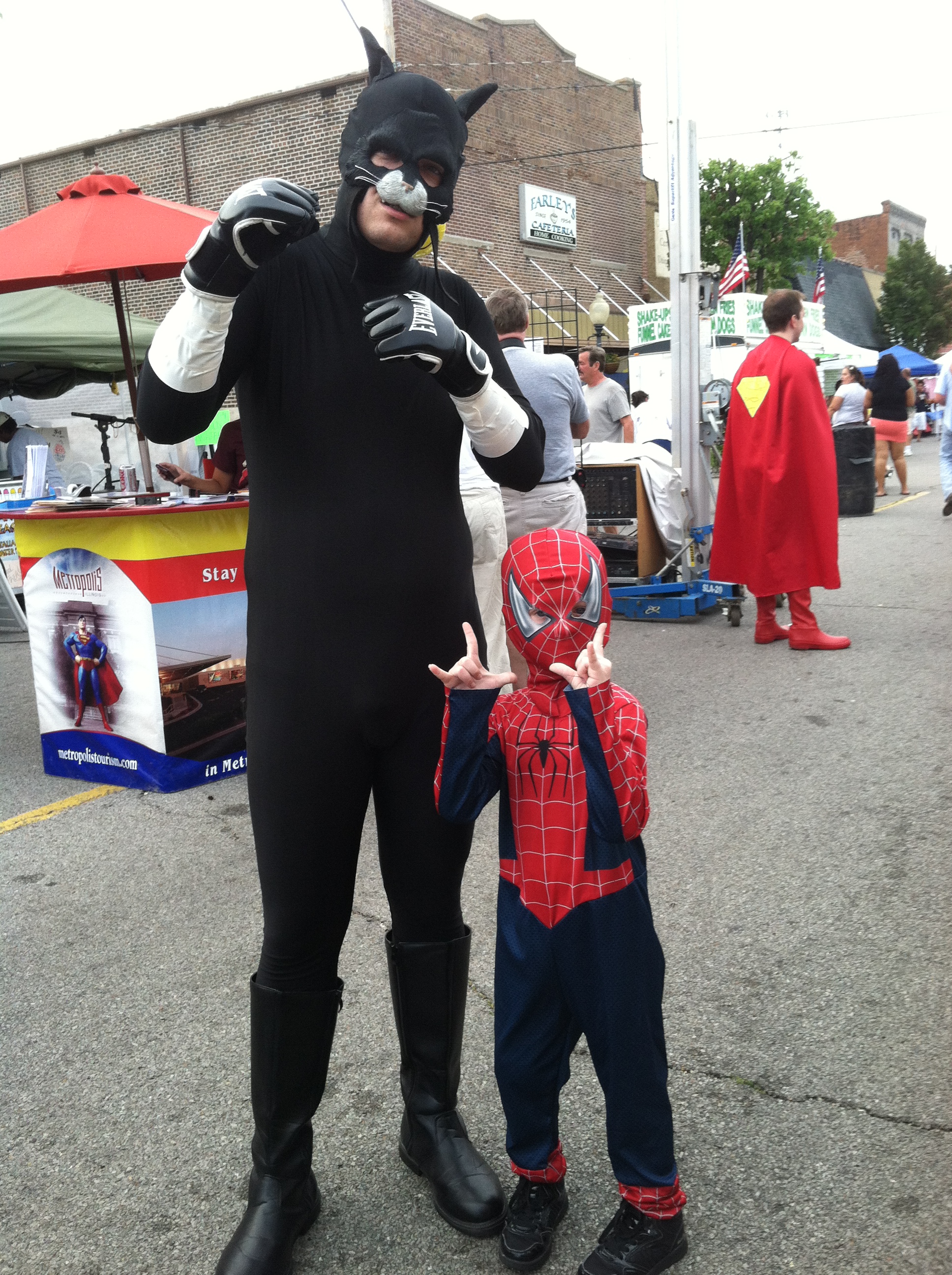 One of my favorite costumed events is the kids costume contest. If you want to see some cute costumers, Metropolis has them! The kids are awesome, and make me jealous. When I was their age I had to run around with a towel or plastic cape around my neck to be super! One Halloween I got a plastic Spiderman costume- which the crotch ripped out of after one good spider-leap off the living room couch!