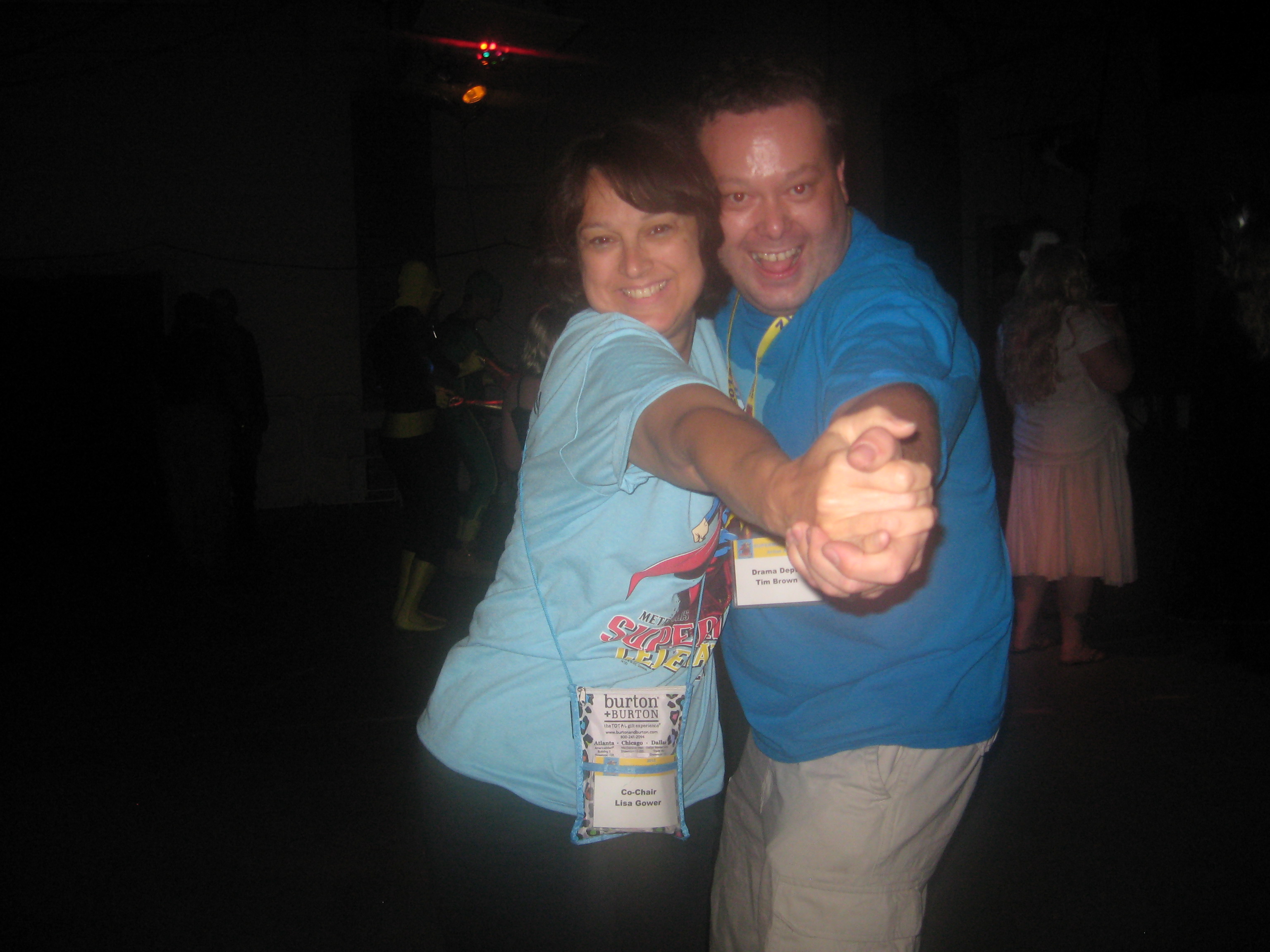 Everybody has a great time at the dance party and even the organizers and volunteers put on their boogie shoes and dance on Saturday night! (That’s co-chair Lisa Gower and Fan-Film/Planet Krypton A/V coordinator Tim Brown.) Many folks stop by after attending other events in town or after heading across the river to Paducah for dinner.