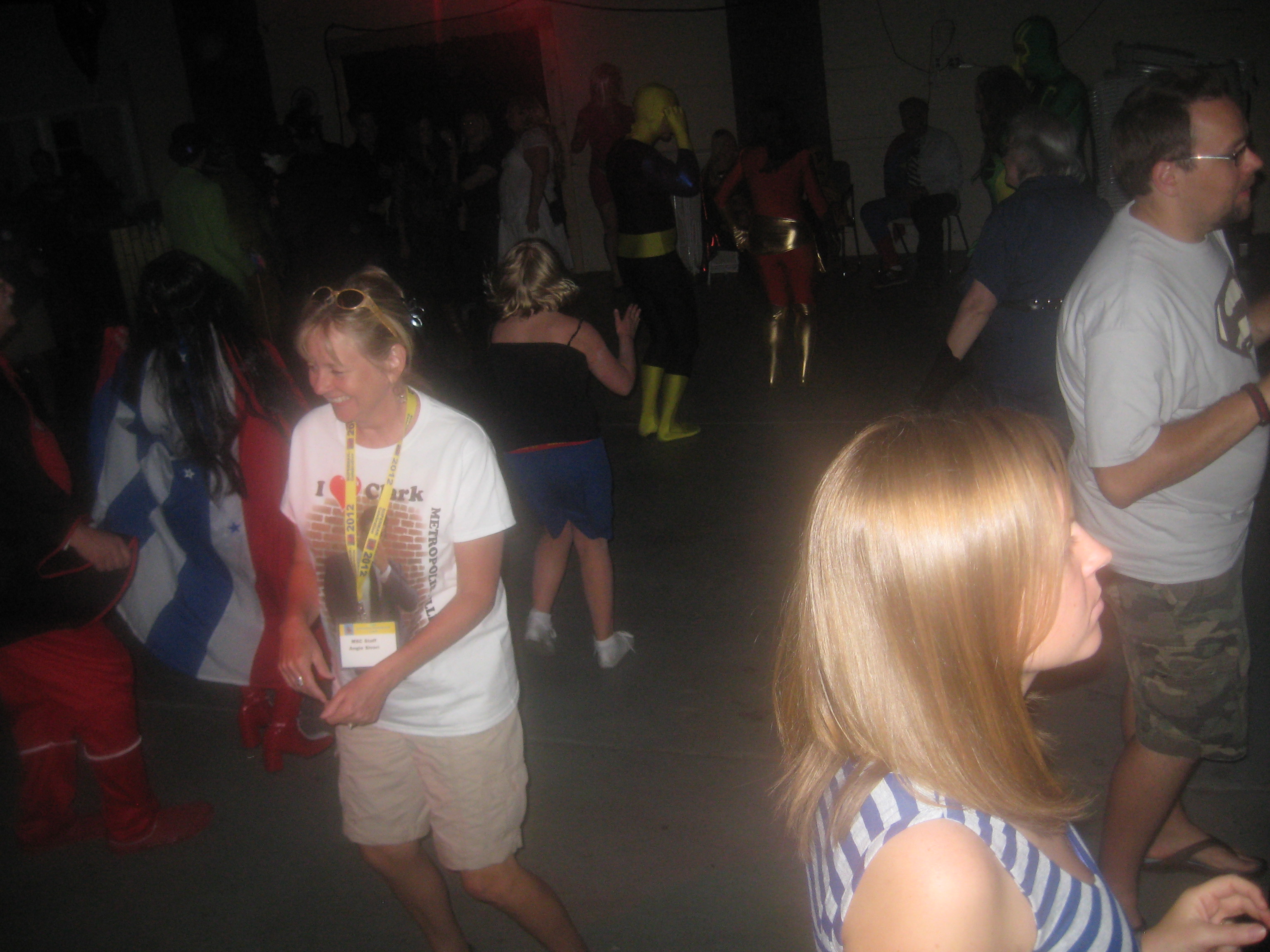 Saturday night’s After Hours Dance Party at Planet Krypton (fan-film theater) is another great time to see costumes once the sun has gone down in Metropolis. Families, couples, stag supers, civilians, and more come out for this late night social event!