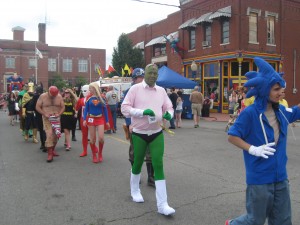 The contest starts off with a parade up Market Street to the Noel Neill statue and back down to the Superman statue. People line the street to watch the parade and cheer on their favorite costumes. It’s a great time for contestants to gain support for “Fan Favorite” during the costume contest.