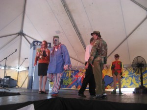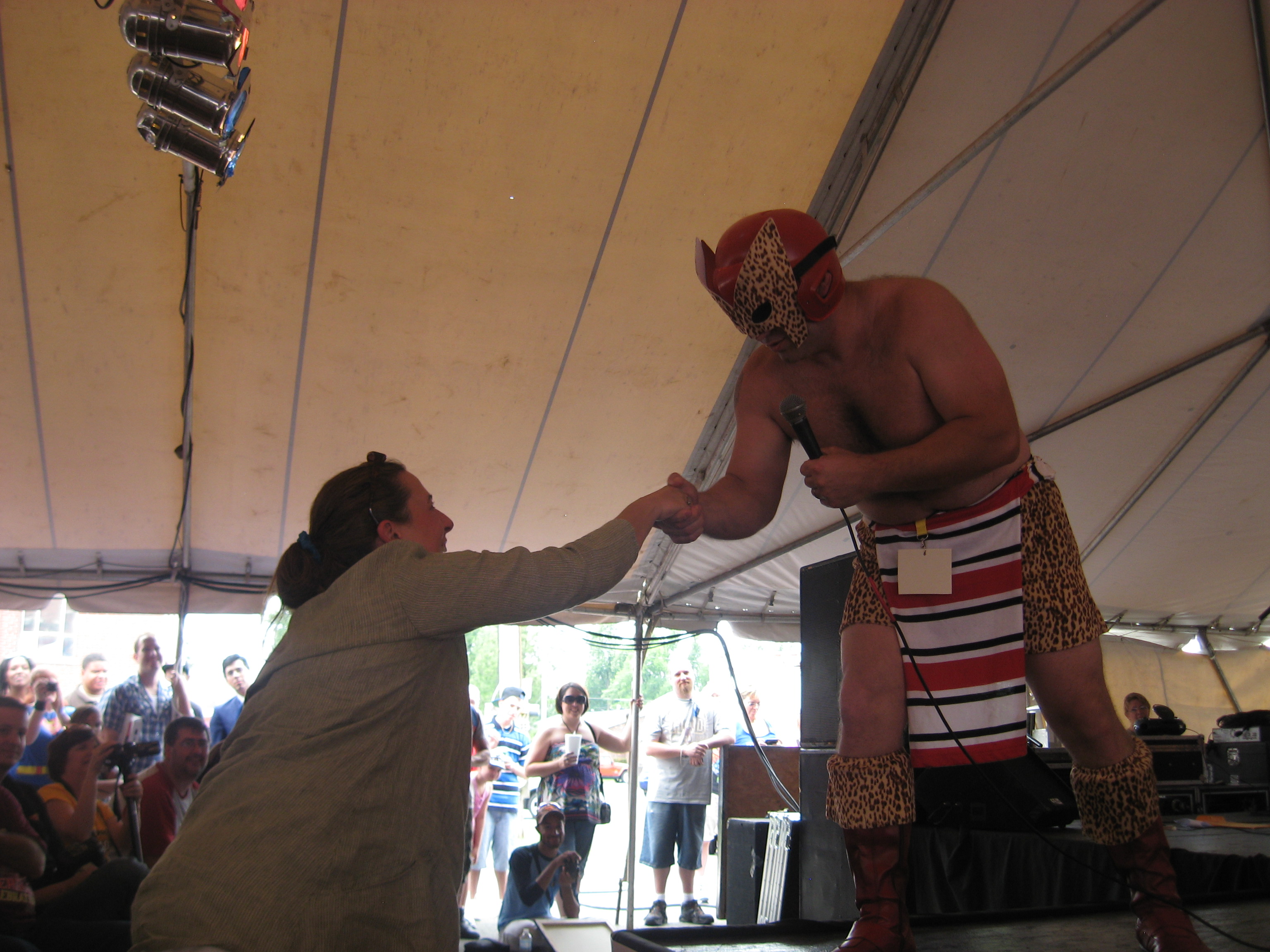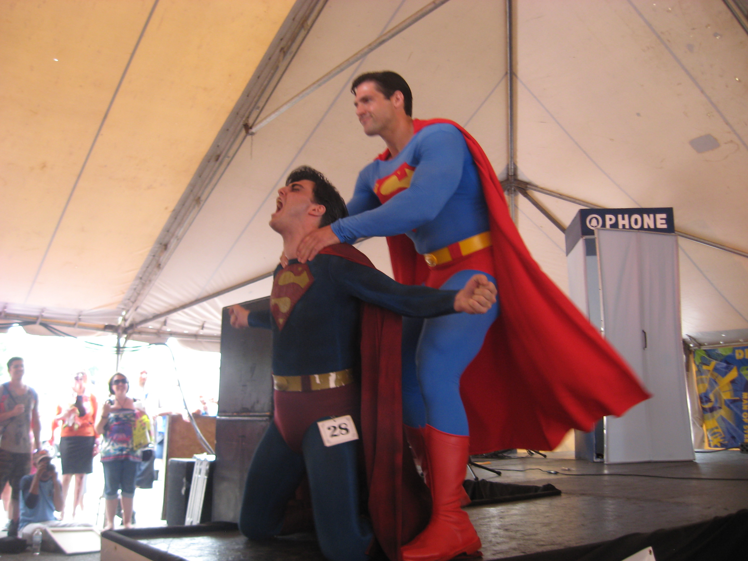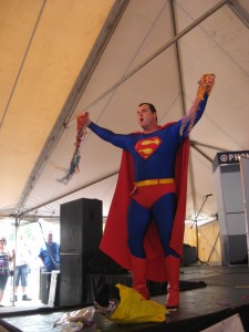 Steve “The Boy-Wonder” Kirk had his bat-gauntlets full again this year as Emcee Robin. Steve’s been the emcee for the past few years, and has done a great job with co-host Josh. Lots of ad-libbing can happen during the contests. Some of my favorites were when Steve and Josh kicked a piece of Kryptonite around stage, or when Josh hugged his father Jor-Elvis. Too funny!