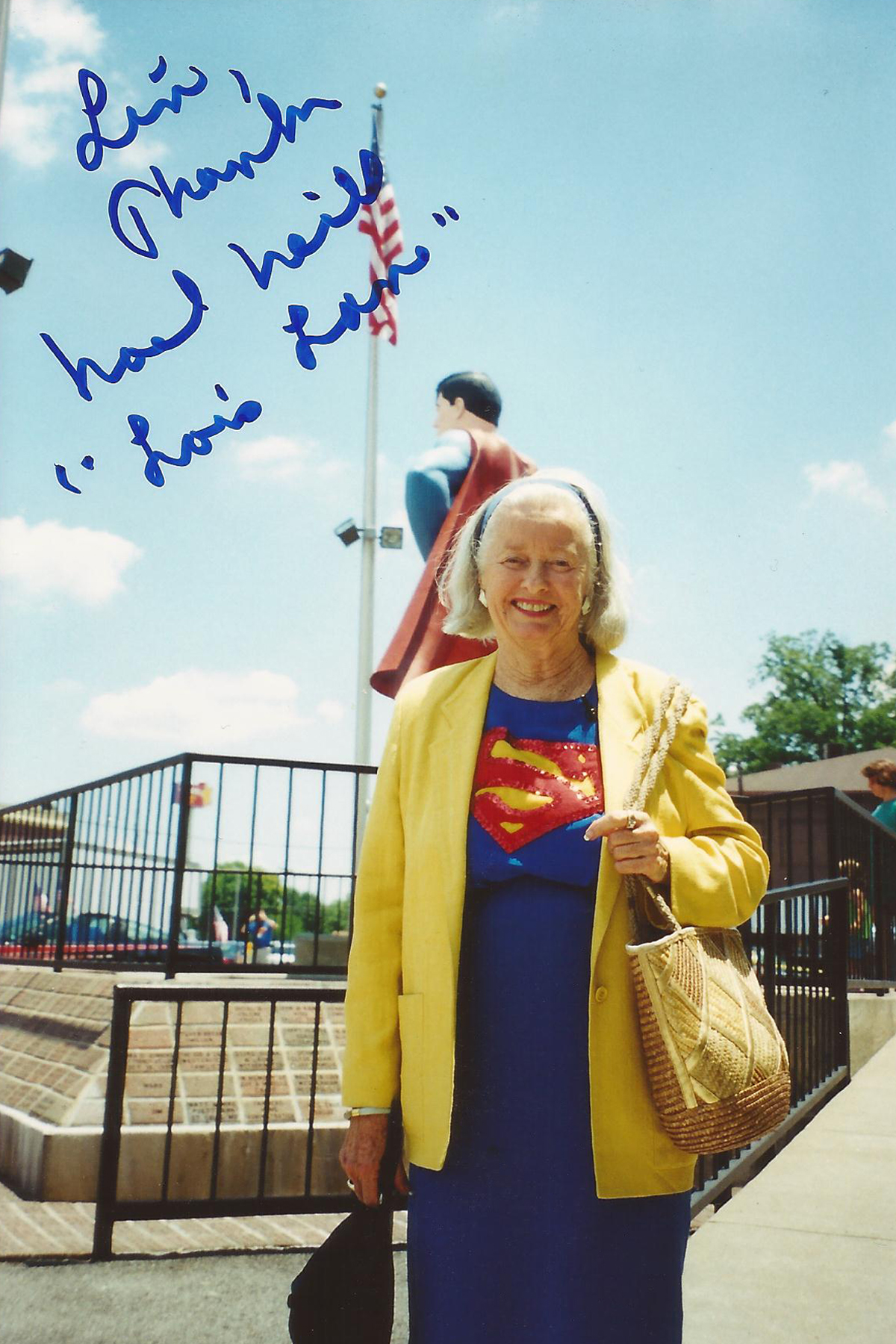 Noel was the original Lois Lane in the Kirk Alyn Superman movie serials, and the 2nd Lois in the George Reeves Adventures of Superman TV show. She also played Lois Lane’s mom in Superman:The Movie, was in a Jerry Seinfeld American Express/Superman commercial, as well as appearing in the Superboy TV series and Superman Returns movie.