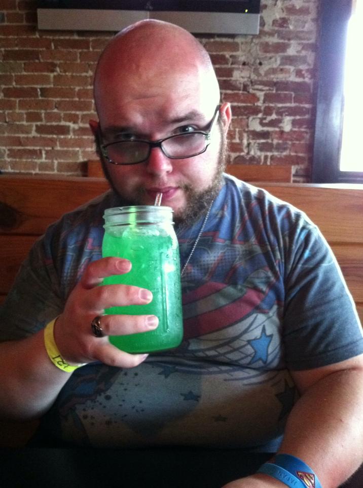 But before we left town, there was one thing Ronnie wanted to try at Fat Edd’s Roadhouse (formerly “Willy Jak’s”)- a drink called a “Kryptonite“, which was green and came with a glow-stick stirrer. I was driving home so I stuck with some sweet tea and a water, but did have an awesome cheeseburger. It was good to see the place open again. It was closed last year due to a fire. I got to see a few more friends before we left. Great way to end the weekend!