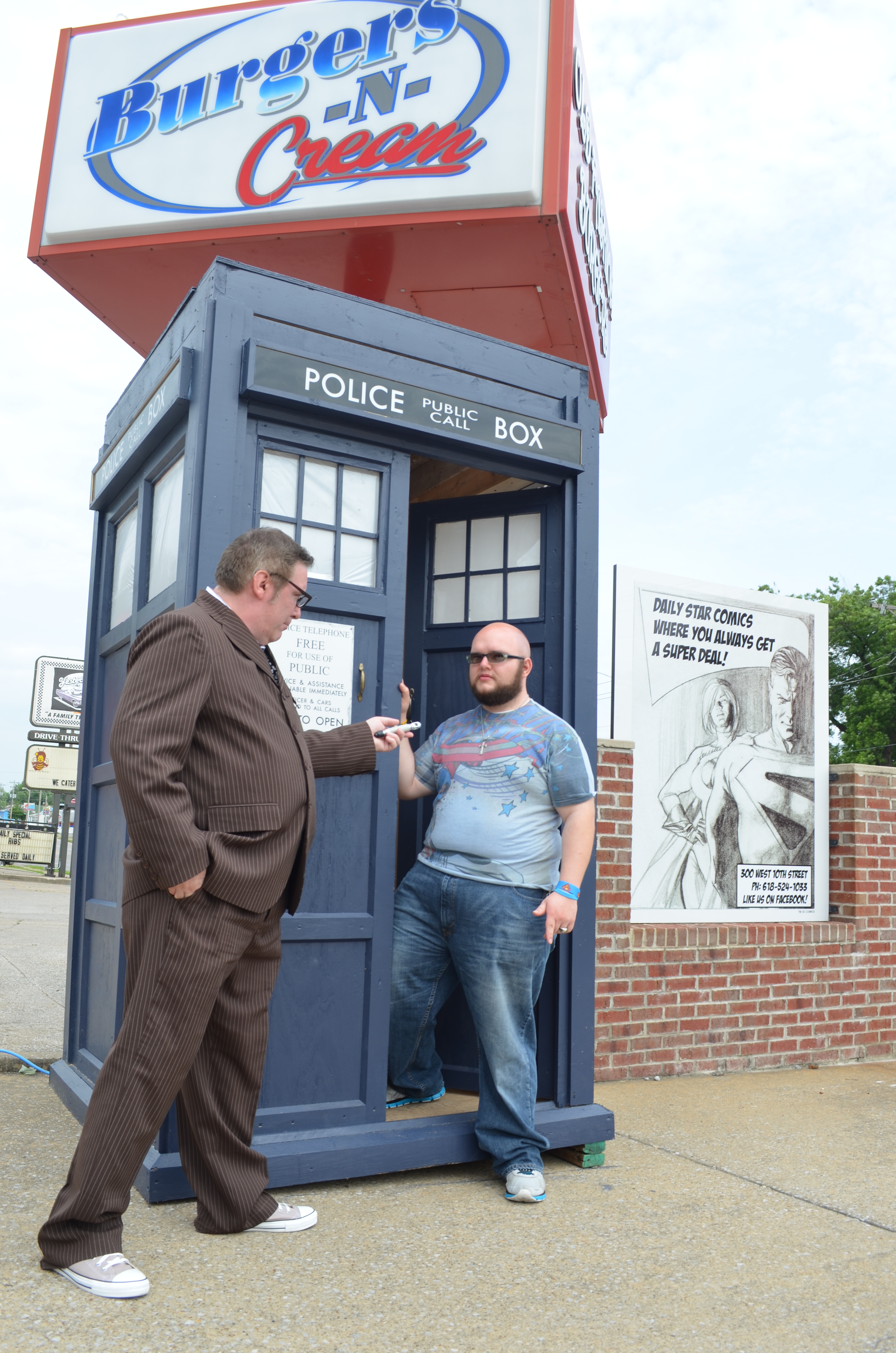 Ronnie hadn’t checked out Daily Star Comics and it’s TARDIS so we slid by there first after grabbing some orange juice at the hotel. The comic shop (300 W 10th St.) is located about a block or so up from the Metropolis Community Center and a block from Market Street- the main part of the celebration. We pass by the shop on the way into town when entering on US-45 S. You can get to Metropolis from I-24 as well- which is how we used to come up when going through Paducah, KY.