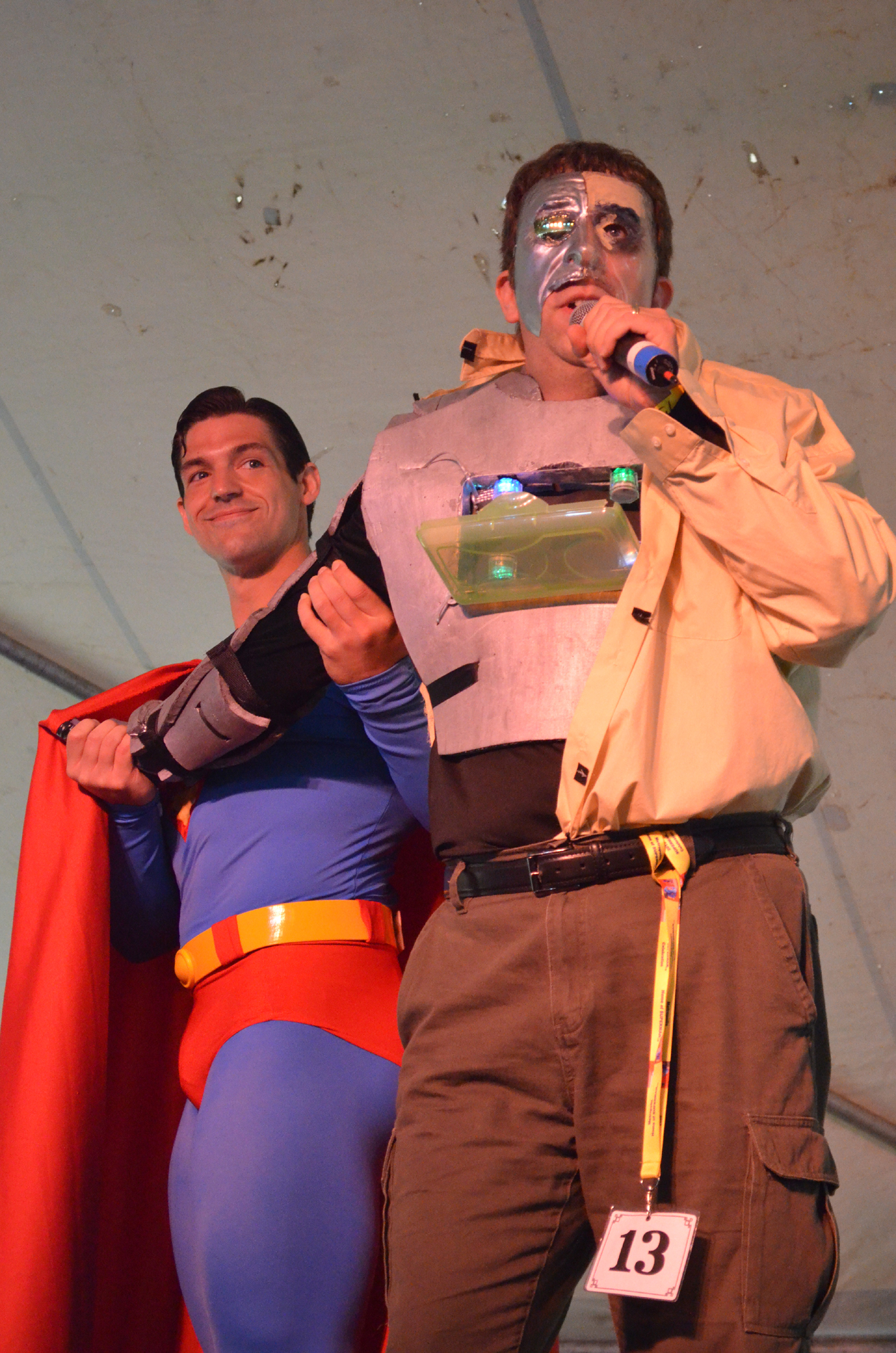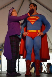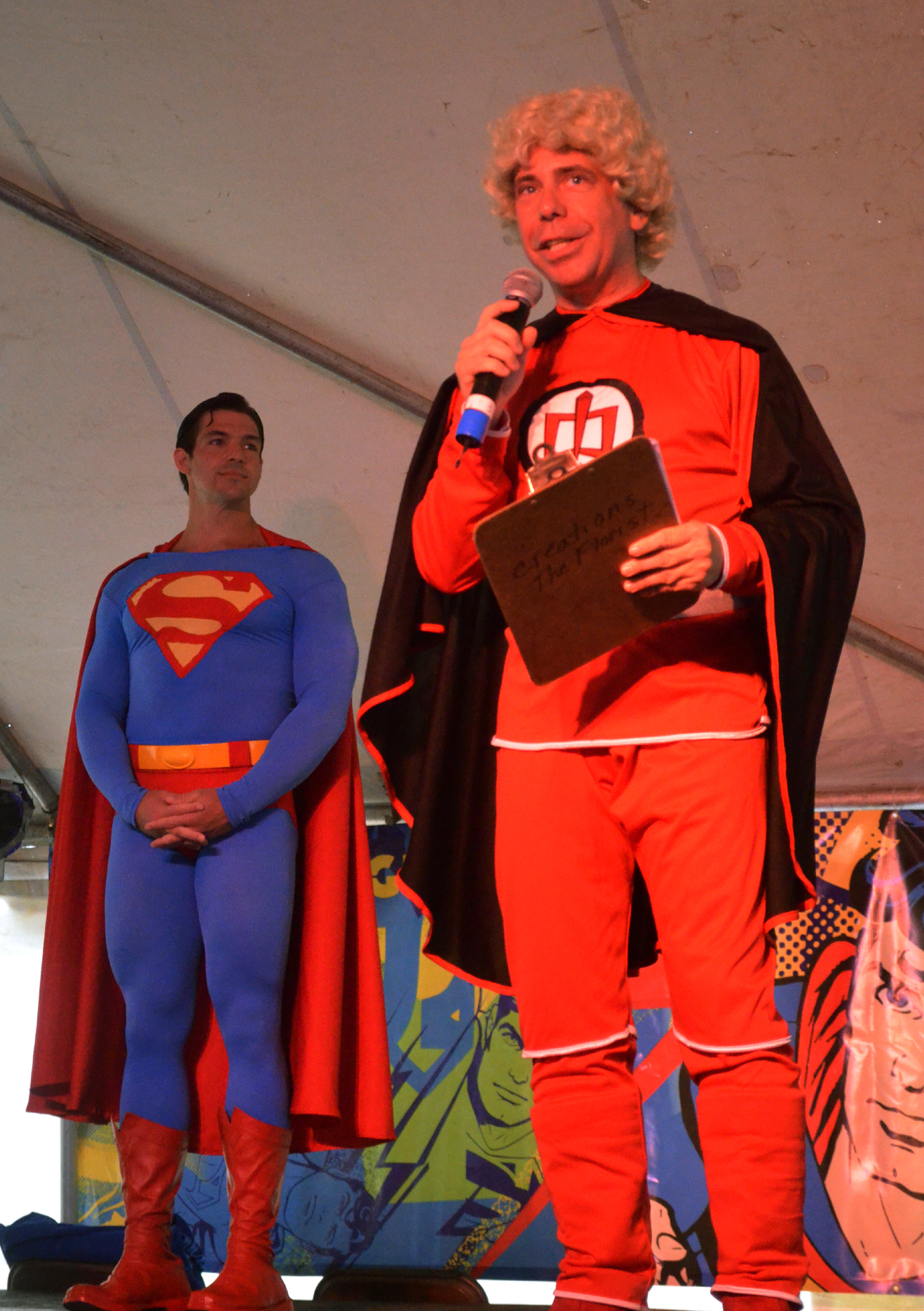 Then the contestants were narrowed down to the finalists. While we waited for the winners to be announced the annual “Superman of Metropolis” awards were handed out (I received one back in 2005!) and the 50/50 winner was drawn. The crowd all laughed when the Super-Boy who was picked to choose the winning ticket pulled his own mother’s ticket! There were a few sore losers in the crowd who accused Super-Boy of using his x-ray vision. 😉