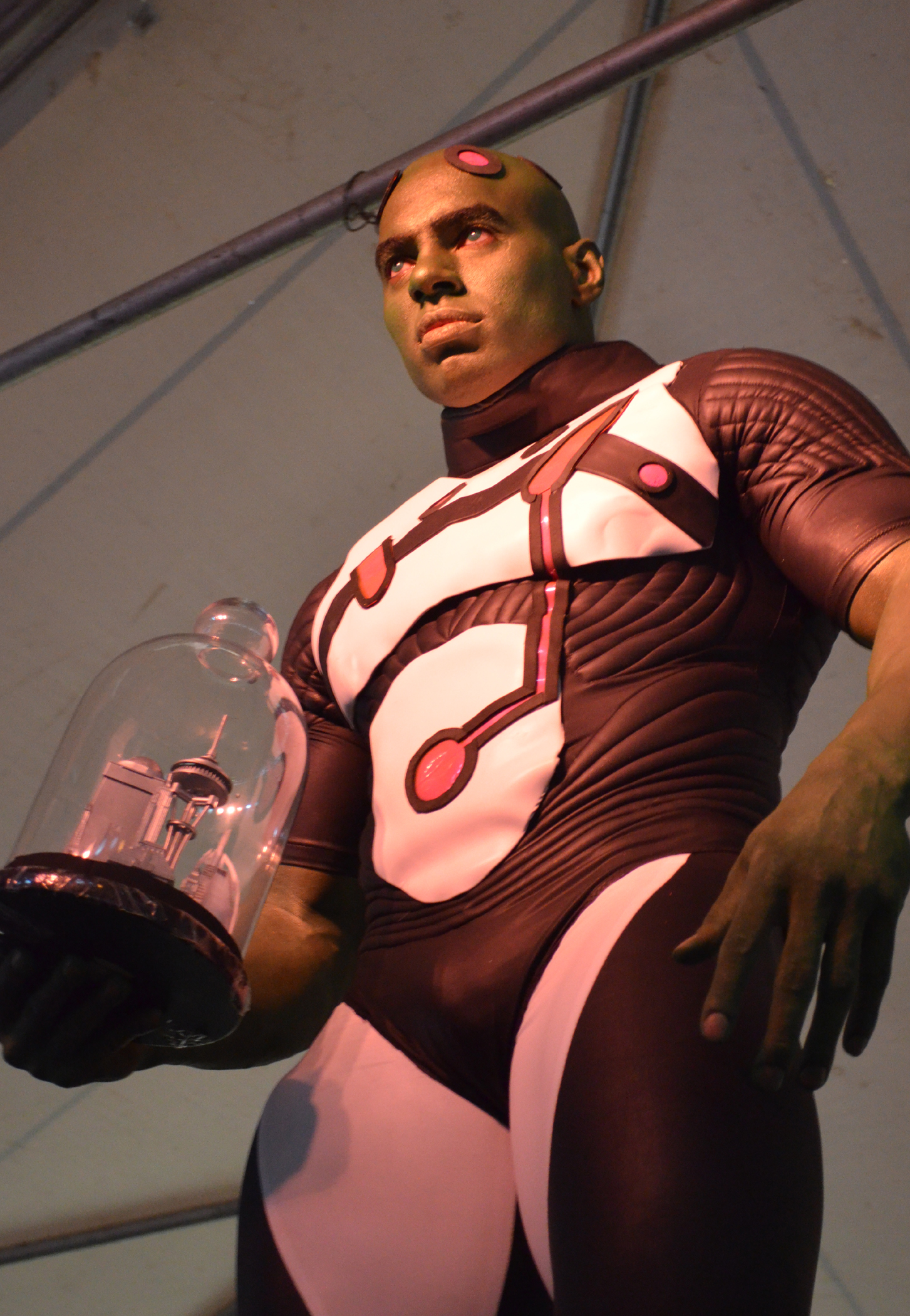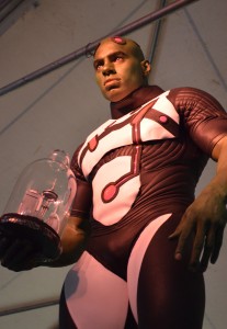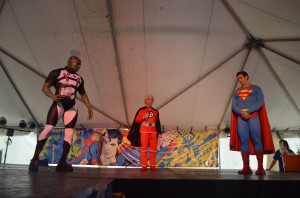 I made my way to the main Metro Tent near the giant Superman statue and found a seat next to the judges’ table just in time for the contest to begin. The judges were guests Brett Breeding, Ron Frenz, and Jeffrey Bresslauer. I’ve judged the costume contest here before and didn’t envy them- although they do have the best seats in the house/tent!