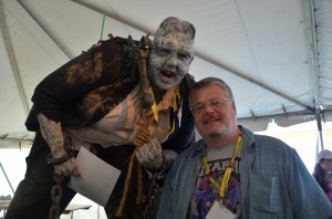 I missed the Parade of Characters but did finally catch up with Super-Elvis! I had seen pictures of him but hadn’t actually seen him in person. Being an Elvis fan and a Superman fan I got a big kick out of him. Unfortunately it looked like Elvis had brought a little “Kentucky Rain” with him to Metropolis…mercy!
