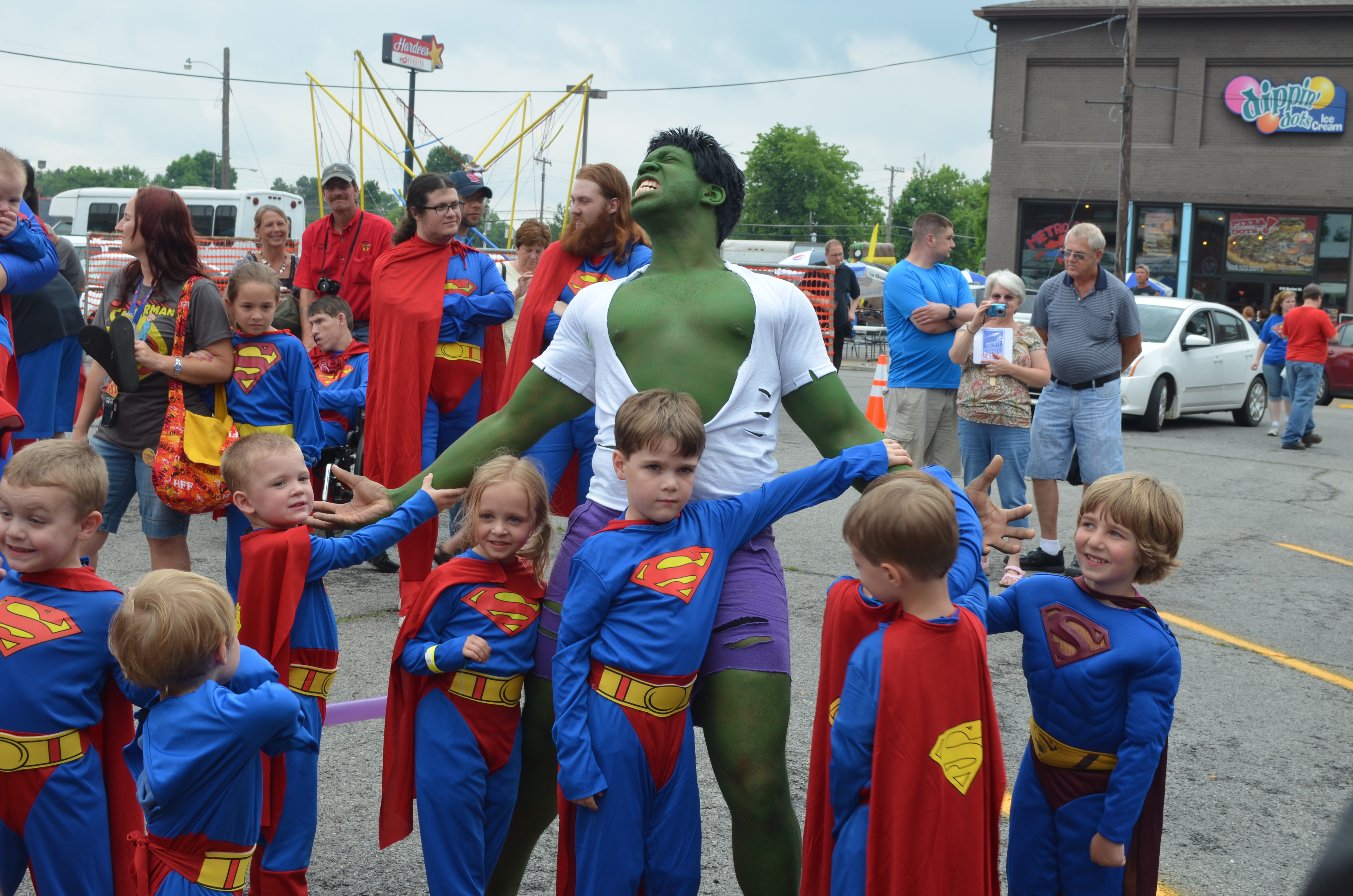 Greatest American Heroes, emcee Steve Kirk and co-host Superman (Josh Boultinghouse), welcomed the crowd and got the contest underway. The place was packed again this year, and with the wet weather outside many folks tried to get in out of the rain. Most years everyone is just trying to find some shade!