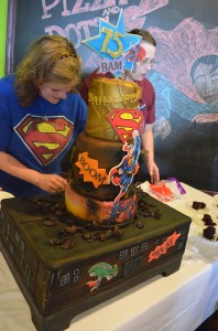 And why wouldn’t they be- we all got free cake at Dippin’ Dots to celebrate Superman’s 75th birthday! Funny thing, it was the first time I’ve been in Dippin’ Dots since it opened in Metropolis a few years ago. I have always been too busy at the other end of the street each year. The space used to be the old Metropolis Community Center where Artists Alley & Writers Way was first held. Dippin’ Dots‘ production headquarters are across the Ohio River in neighboring Paducah, Kentucky.