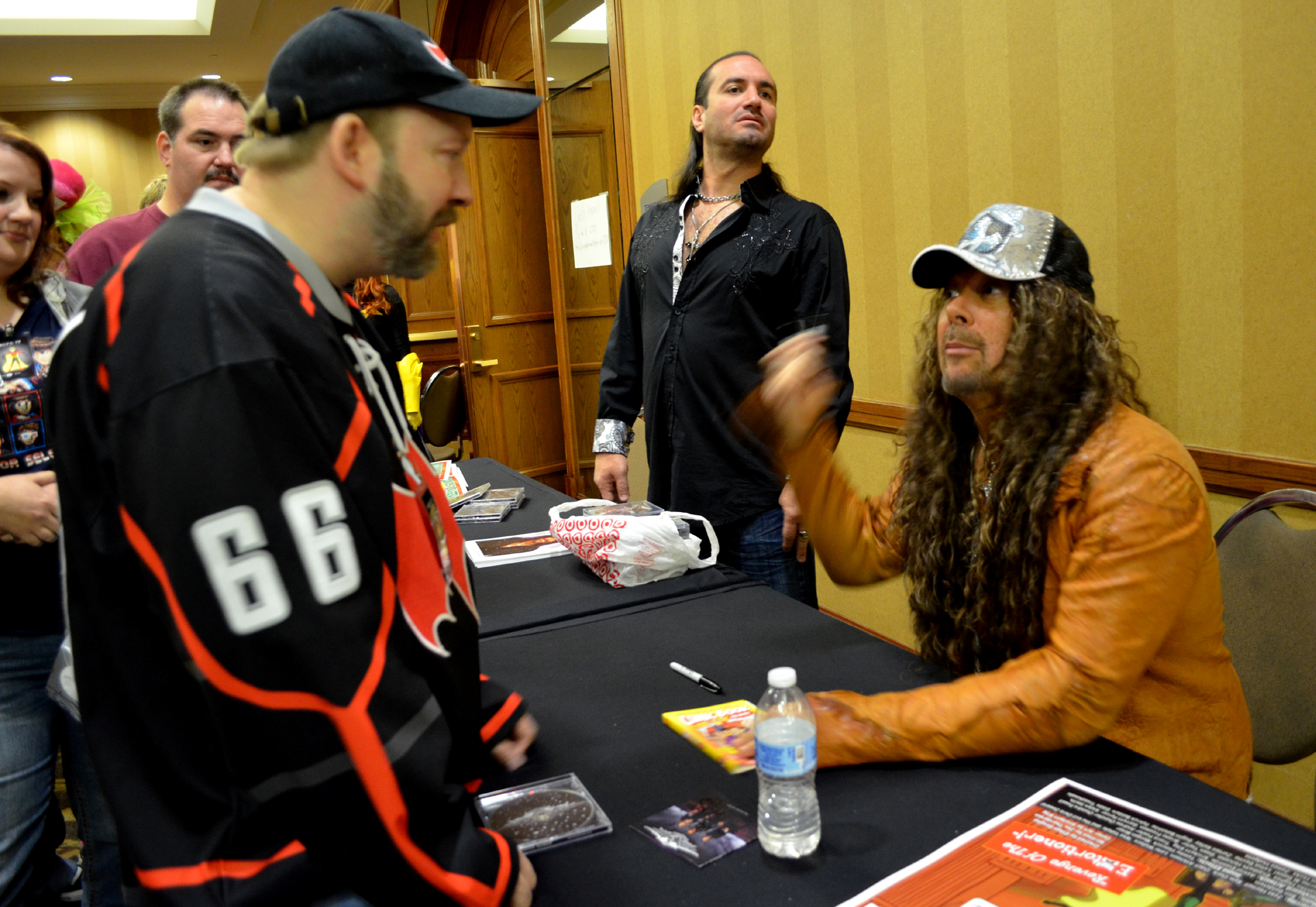 After the Q&A panel Jess moved outside the ballroom to sign autographs, pose for pics, and talk more with fans. He thanked me for my question and we talked briefly about “Comic Book: The Movie“, Rob Paulsen‘s “Talkin Toons” podcast, Drake and Zeke, and Memphis in May Music Fest. Unfortunately I’ve been out of town when Rock Sugar played Memphis, and since Nicki and I had plans to go to the Orpheum Theatre’s Annual Auction we missed out on Jess’ live concert at the con on Saturday night with the Memphis School of Rock.