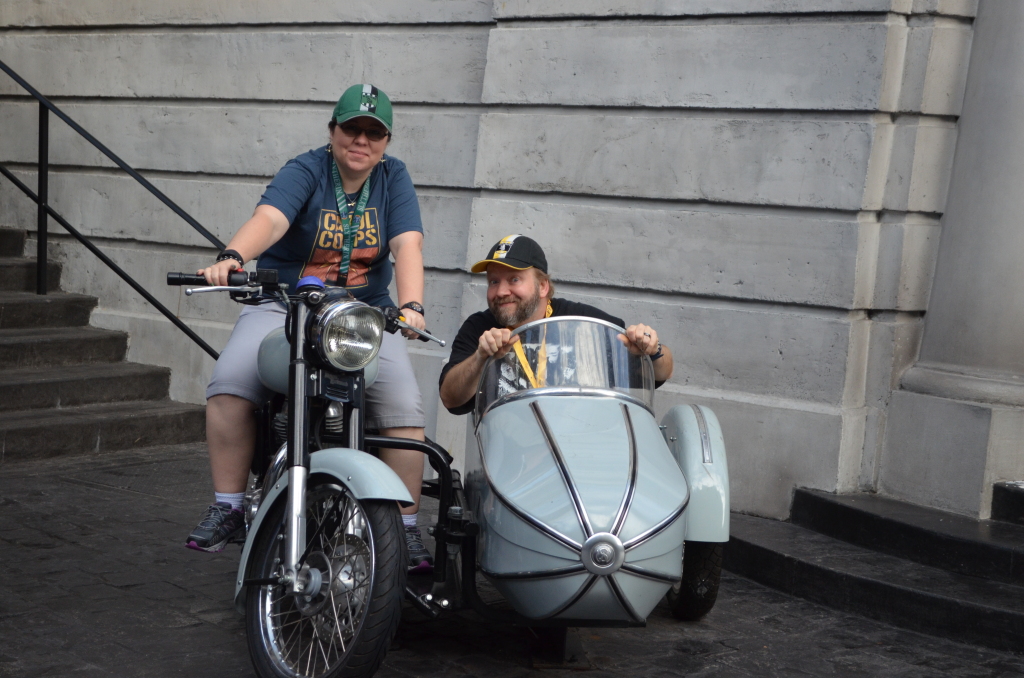 After storing Nicki’s good camera in one of the lockers we hopped in the queue line, which was moving along pretty quickly. There were things to check out like the goblin rail carts that are used to travel though the underground passageways to reach the vaults below Gringotts. The weather was nice change from the Memphis area that week.