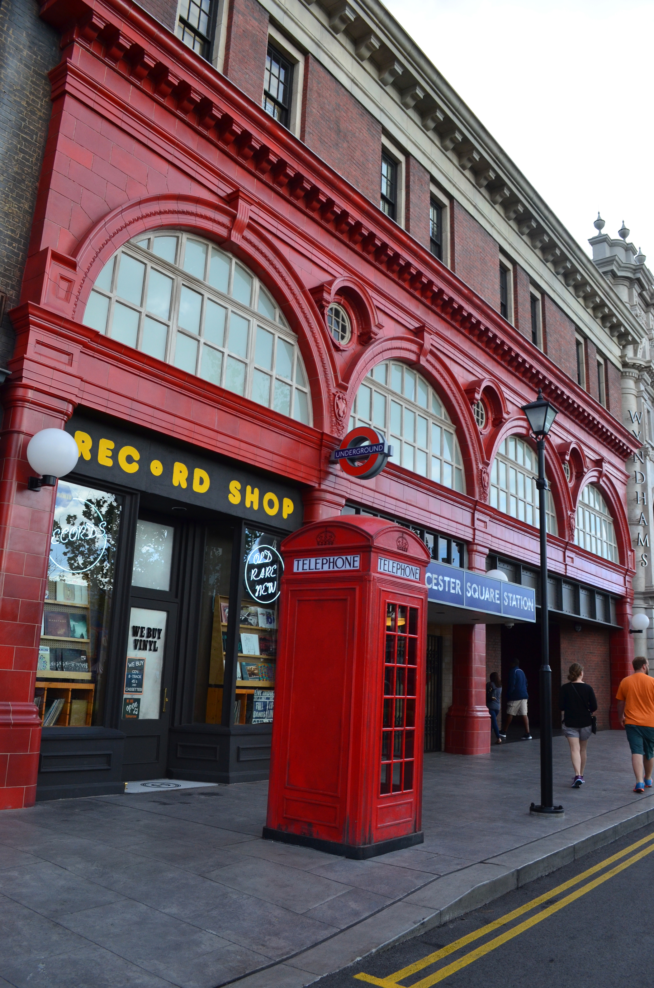 We were able to get into the Universal Studios part of the park an hour early (thanks to our room keys) so we headed straight to London– or Florida’s version of London. Best I remember from my last two visits, this was the JAWS ride area, and the big shark still hangs around the corner on a dock just before you reach London. Oh, and be sure to step inside the phone booth to hear a message from the Ministry of Magic.