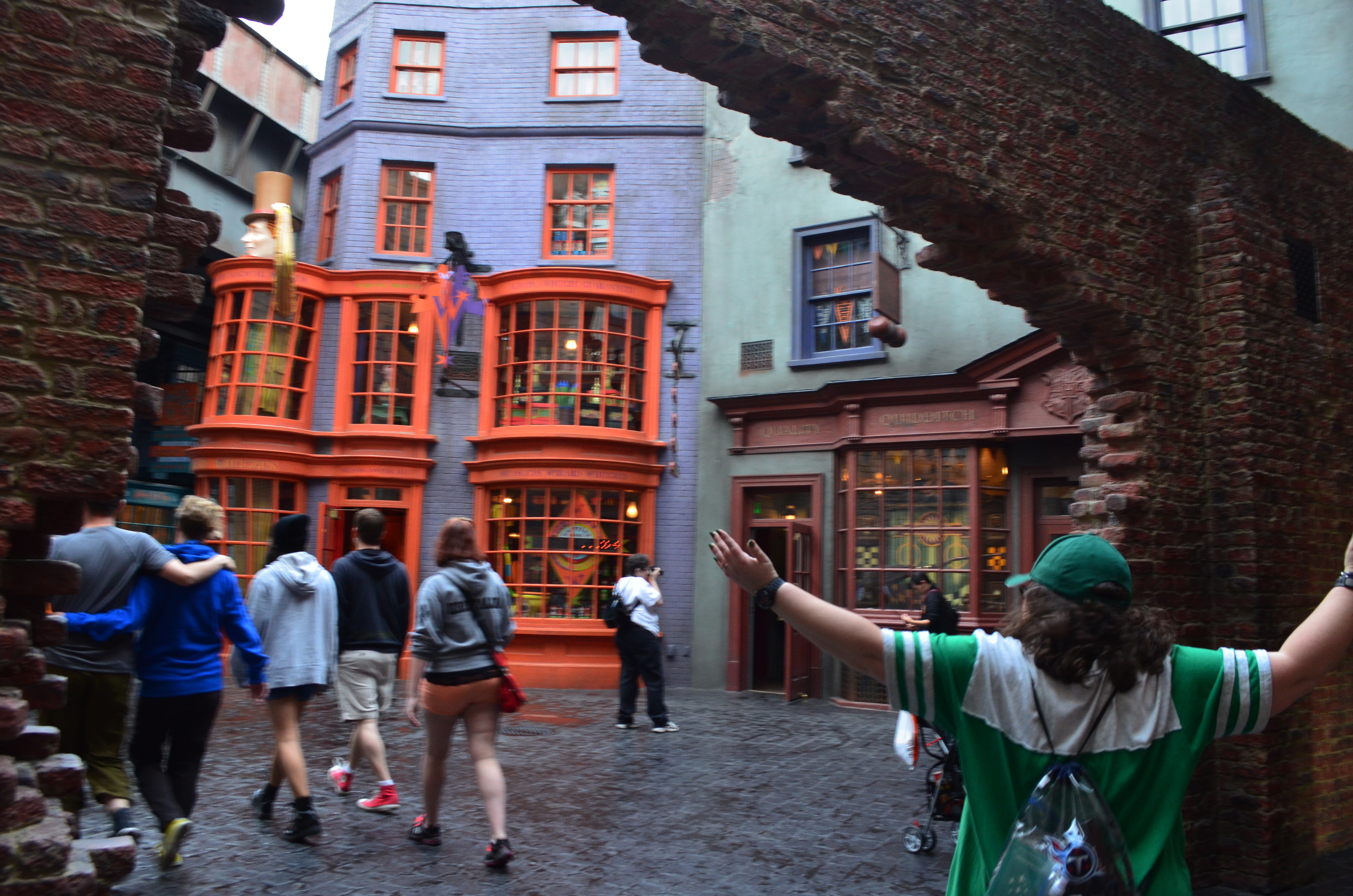 We entered through a secret entrance between King’s Cross Station and 12 Grimmauld Place and found Diagon Alley!