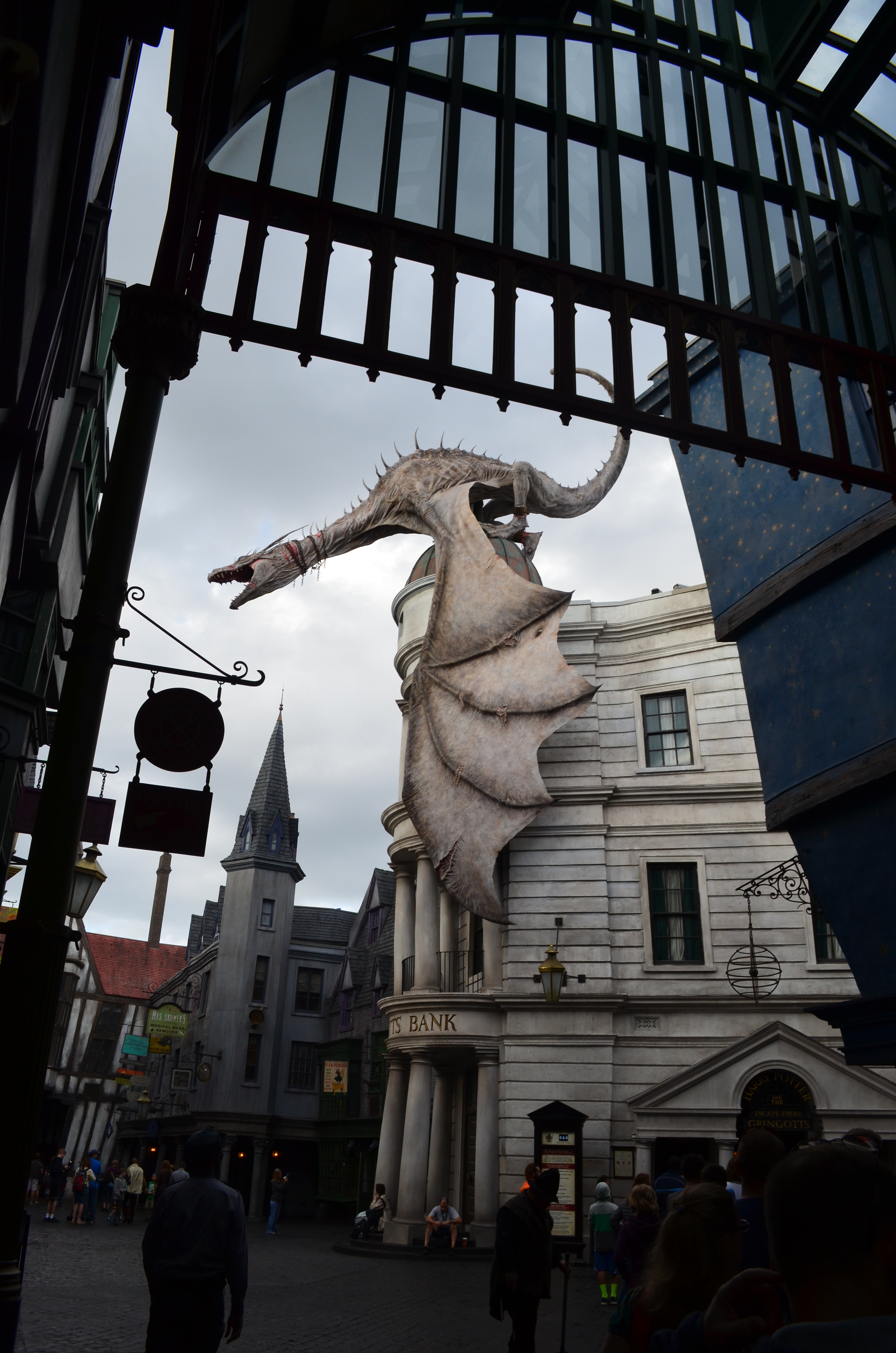 We wanted to get to ride Escape From Gringotts first. It’s a 3D (or should I say “4D”?) motion ride inside Gringotts Wizarding Bank in the center of Diagon Alley, and one of the newest rides at the park.