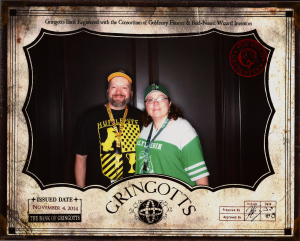 We actually exchanged quite a few bucks while we shopped in Diagon Alley- wands, chocolate frogs, butter beer and more, but that will have to wait until my next post.I’ll also post about our trip to Hogsmeade on the Hogwarts Express, our visit to Hogwarts Castle, dining choices at the park, and some of the great entertainment we experienced in Diagon Alley and Hogsmead.
