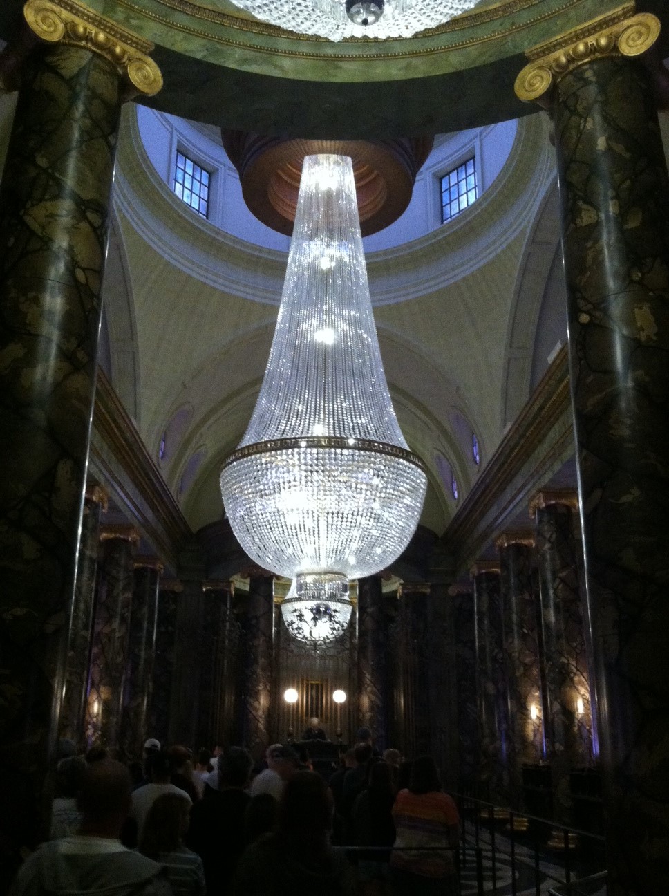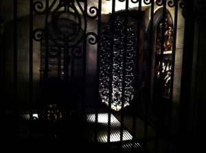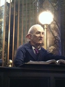 Once inside Gringotts it was like we had stepped into the Harry Potter movie world! There was a huge chandelier, and rows of goblin teller windows on each side with goblins working away on ledgers.