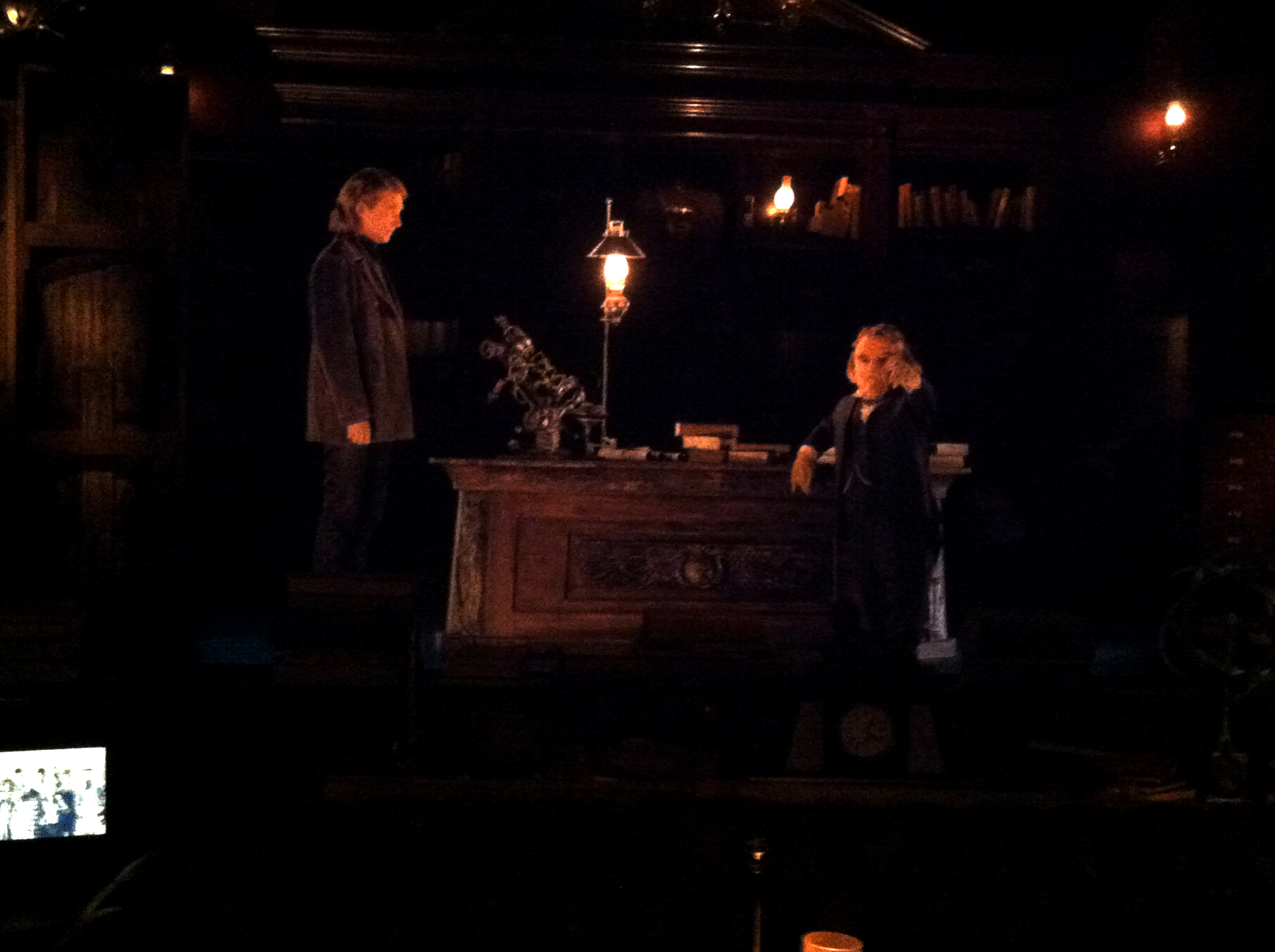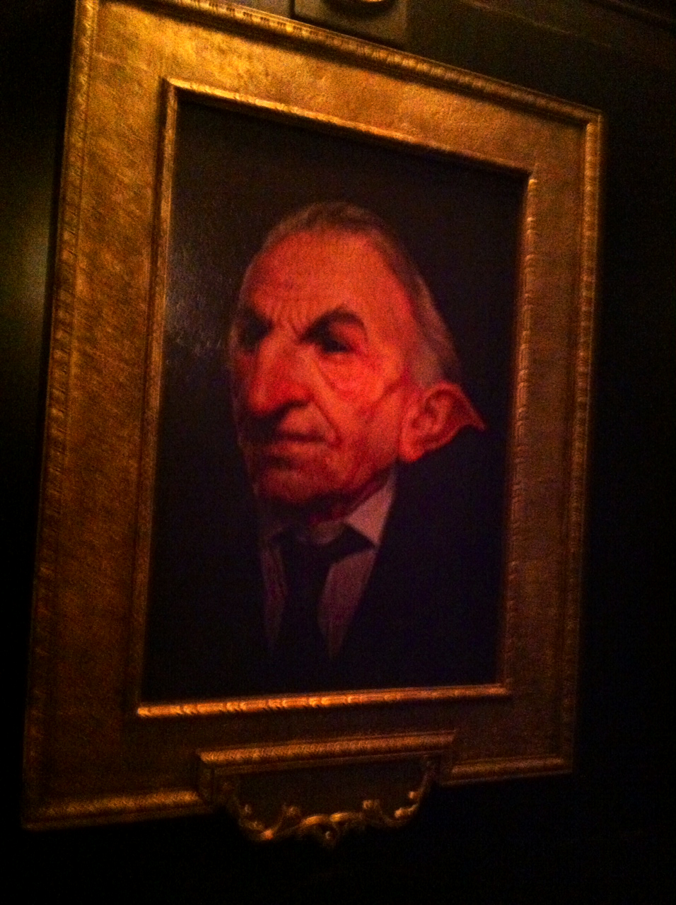 There were also painted goblin portraits, goblin armor, and moving shadows and familiar voices behind closed doors. The shadow effect was used nicely on the Hogwarts Express.