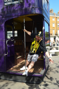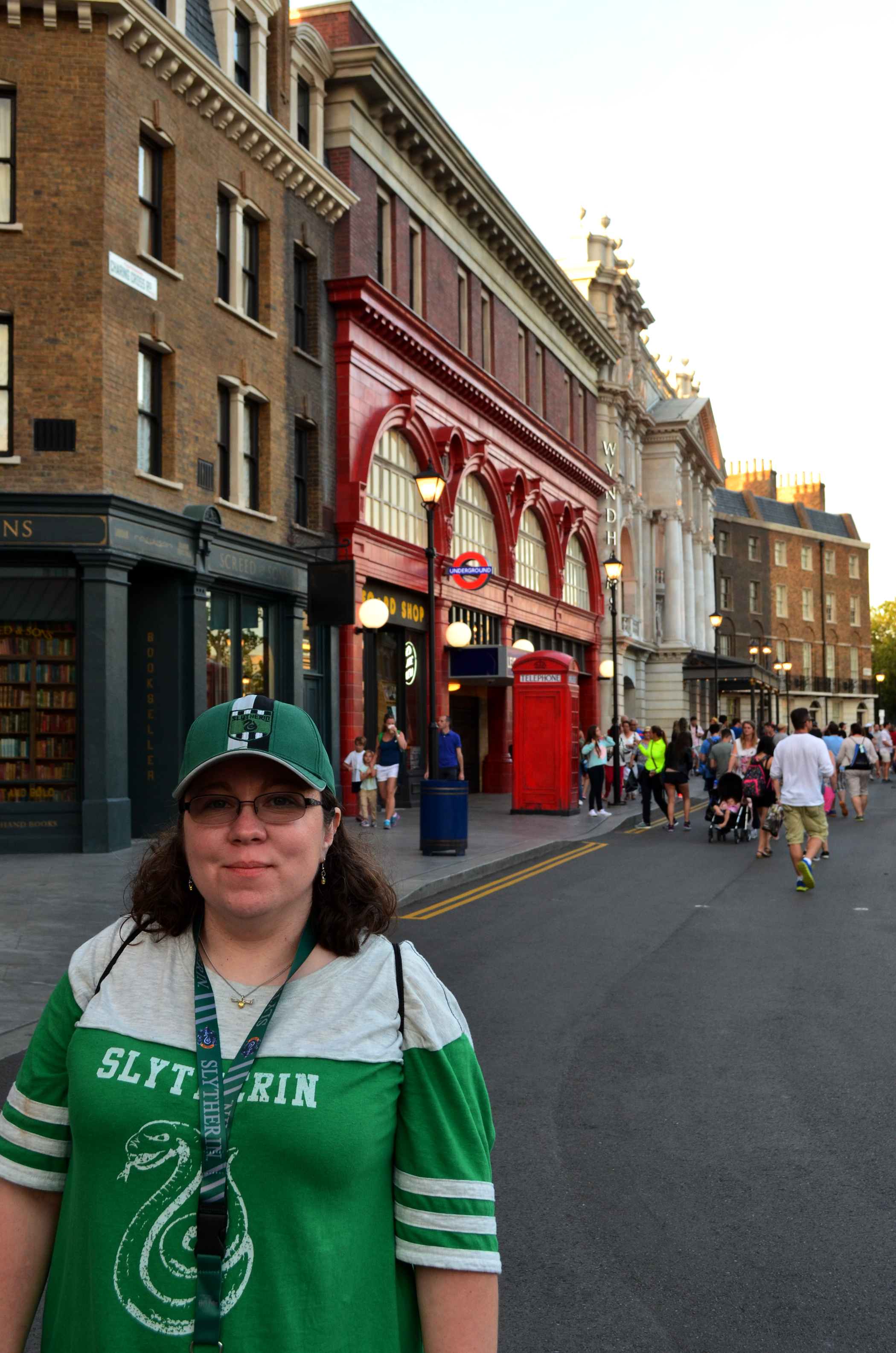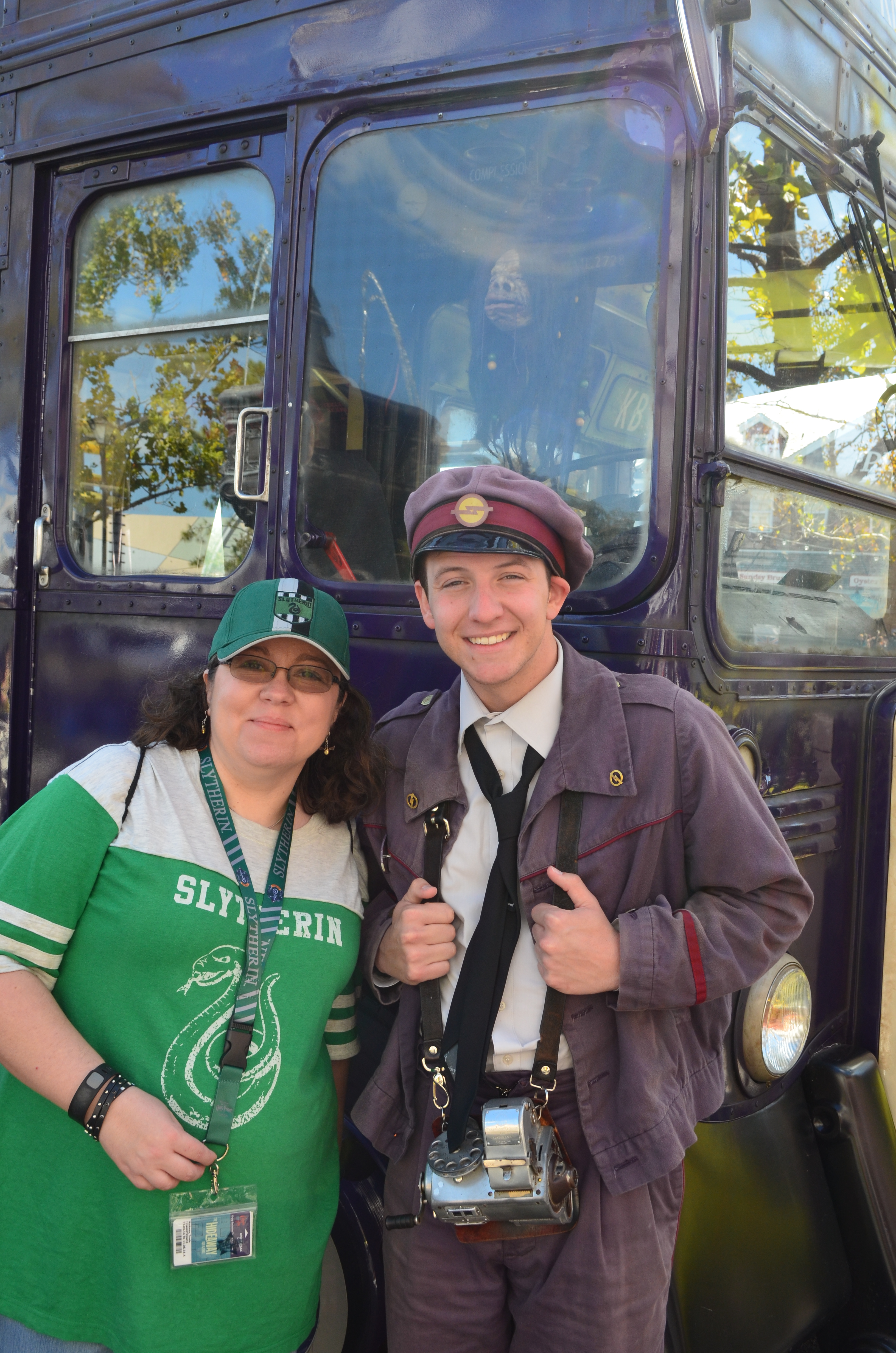 Before hopping the train to Islands of Adventure, we stopped to check out The Knight Bus and met conductor Stan Shunpike and the talking Shrunken Head. It was pretty cool, and parked across the straight from King’s Cross Station and 12 Grimmauld Place (the ancestral home of the Black family).