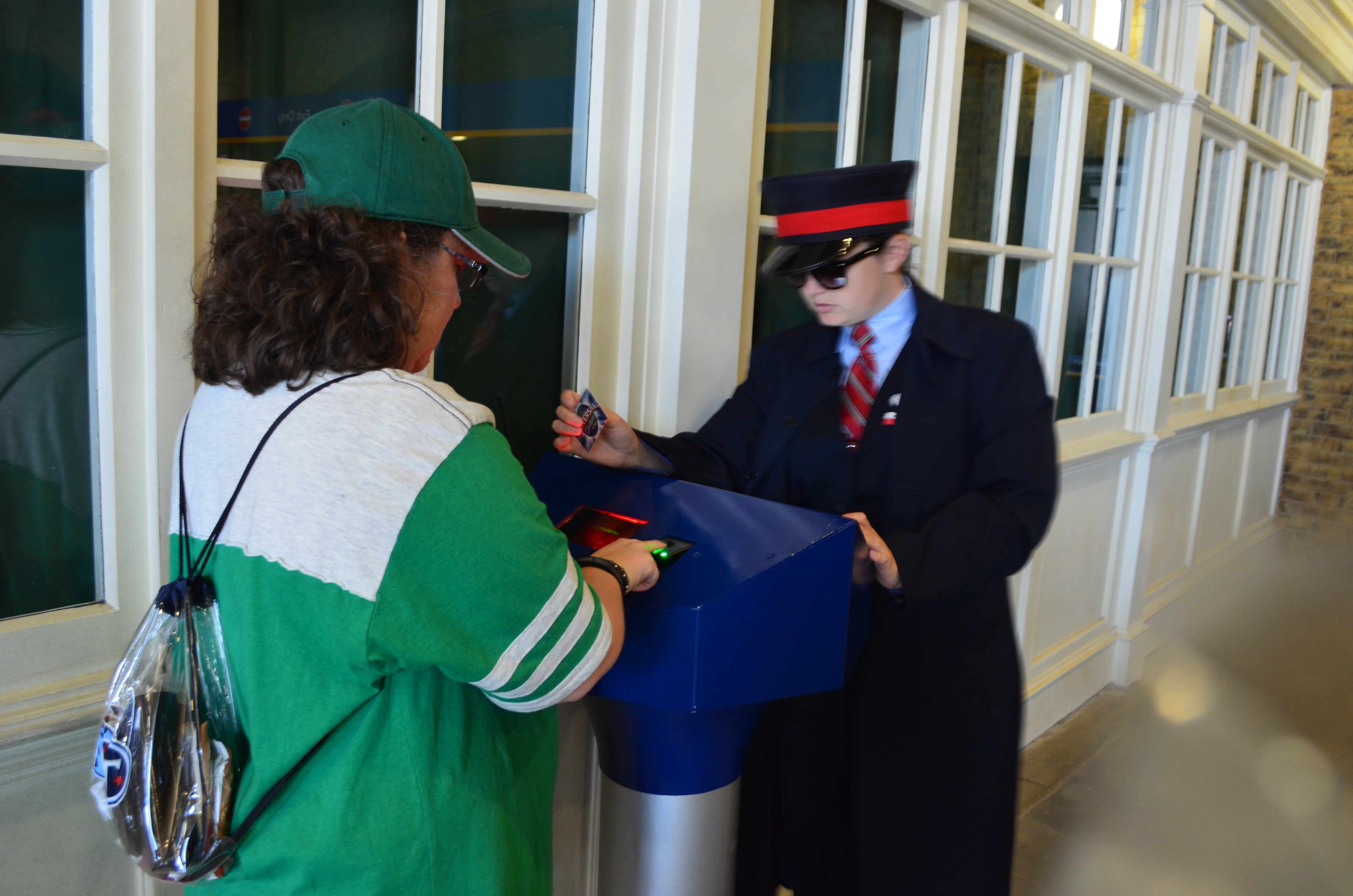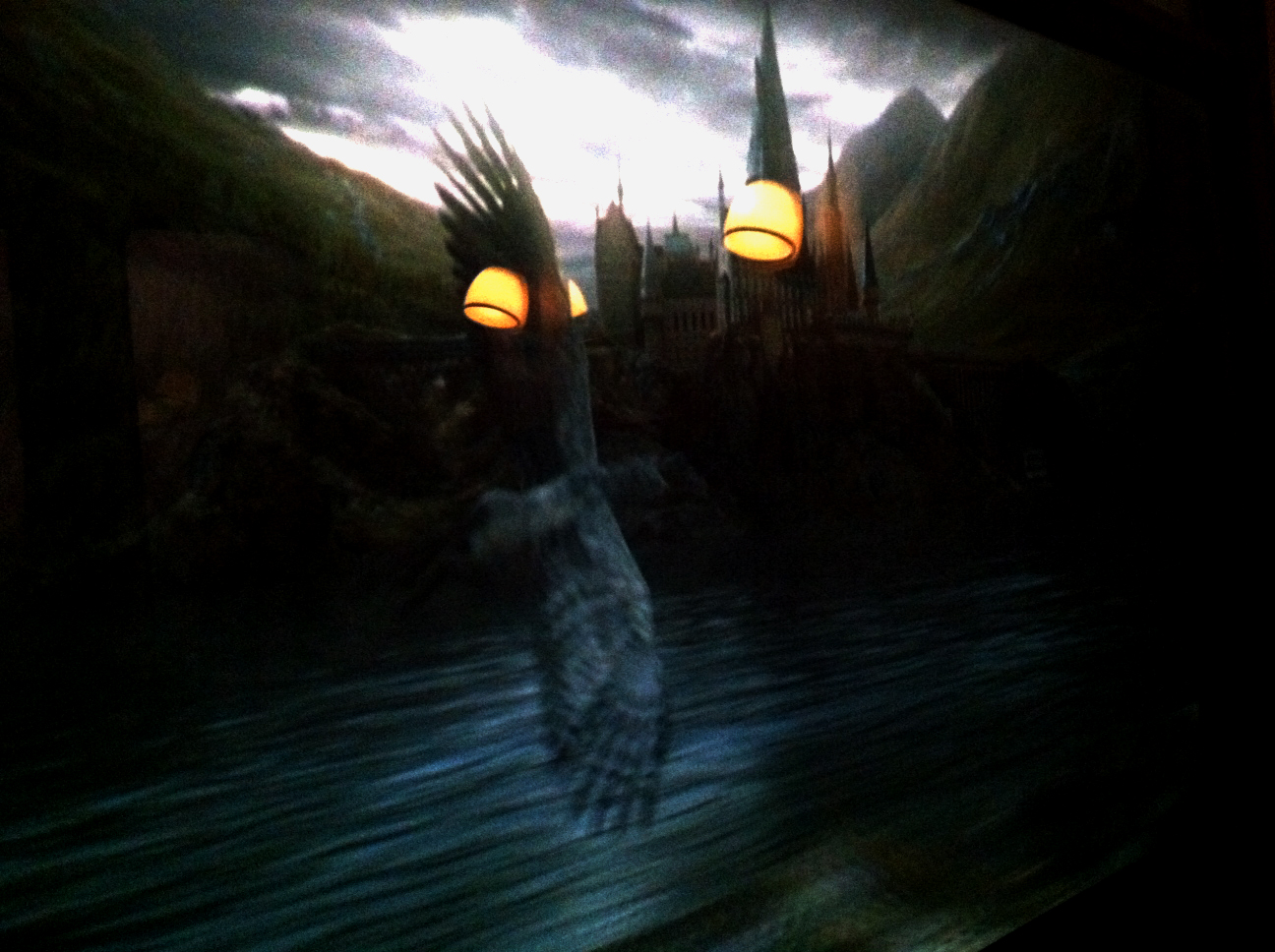 During the train ride we could see silhouettes and hear Harry Potter, Ron Weasley, Hermione Granger, and the sweets Trolley witch out in the hallway. We even saw chocolate frogs clinging to the other side of the car’s windows.