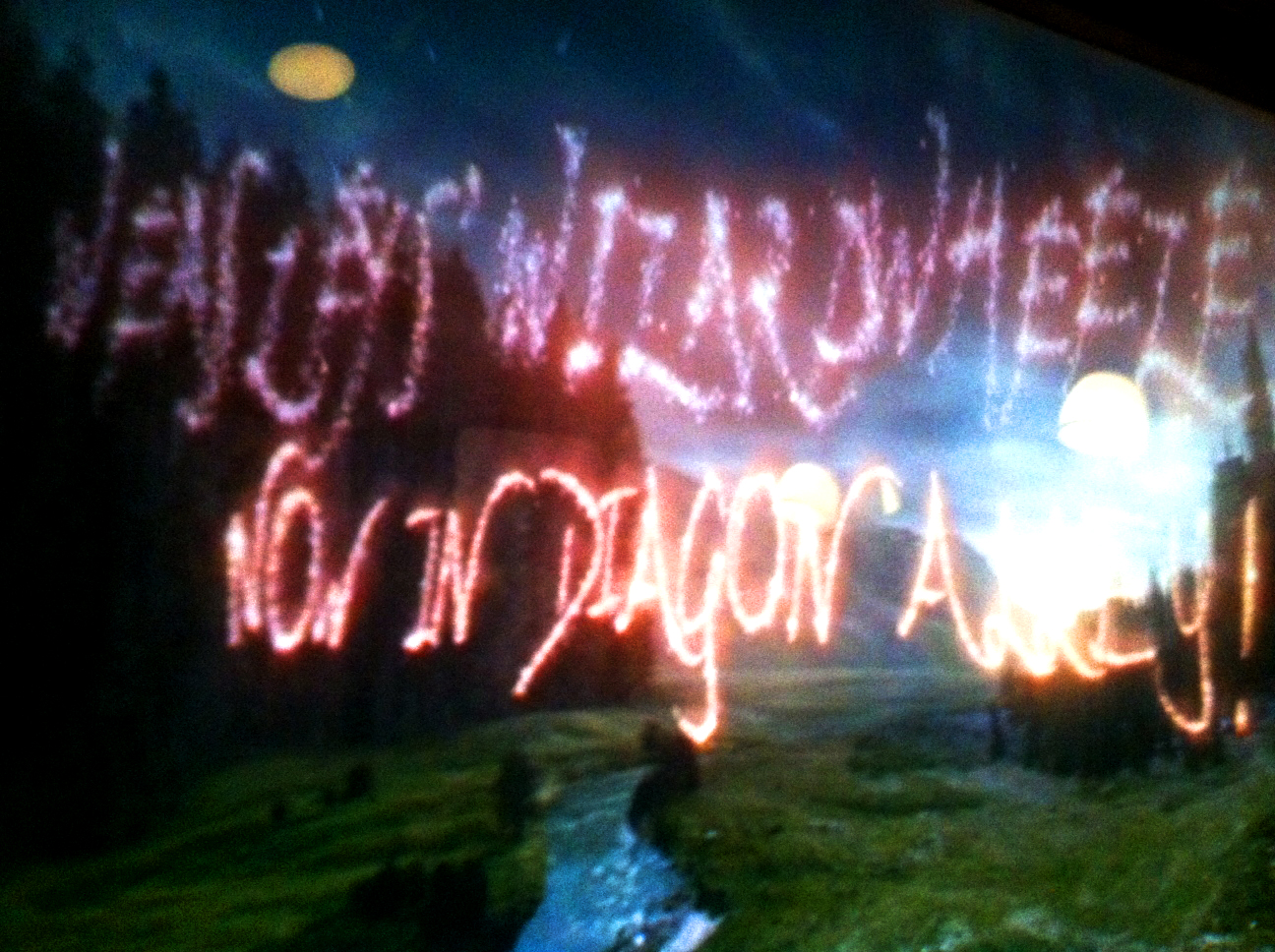 Fred and George Weasley– the Weasley twins, and an ad for their shop Weasleys’ Wizard Wheezes! The view was different on the ride in each direction to and from Hogwarts.