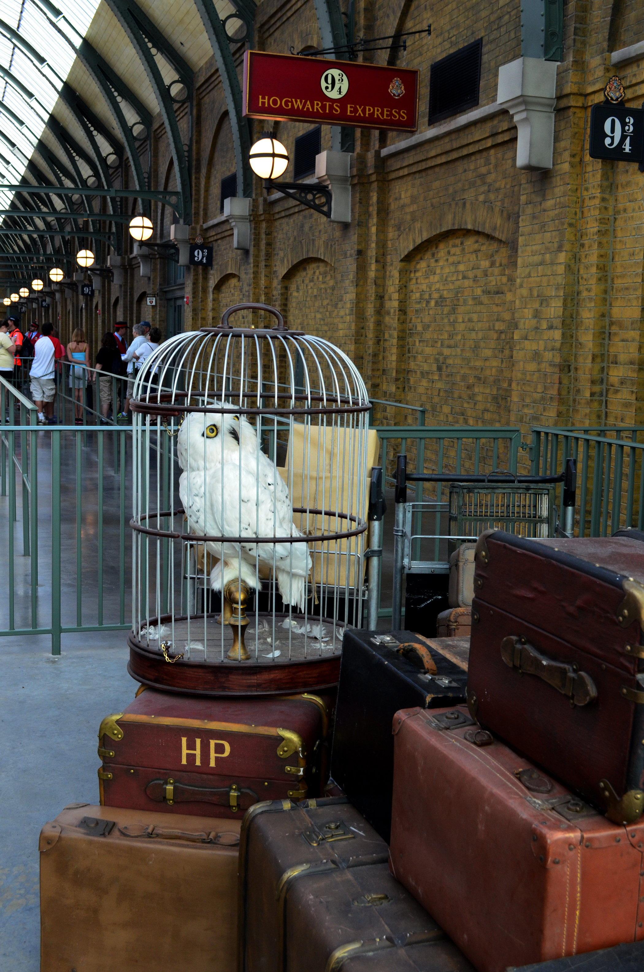 We walked into King’s Cross, presented our park passes, scanned our finger prints, and headed down the tunnel to look for Platform 9¾ and the Hogwarts Express – our magical ride to Hogsmeade and Hogwarts Castle– home of Hogwarts School of Witchcraft and Wizardry.
