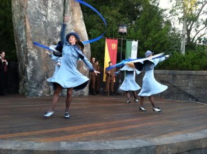 For this appearance it was ladies first, so the female students from the Beauxbatons Academy of Magic performed their magical ribbon routine.