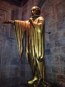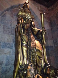 The Pensieve of Hogwarts and other artifacts were throughout the castle. I loved seeing the magical moving portraits including the Fat Lady, and of course the four founders of the Hogwarts houses– Godric Gryffindor, Helga Hufflepuff, Rowena Ravenclaw and Salazar Slytherin. I know there was plenty I missed, because each time I would go to other parts of the park I’d notice something new I hadn’t seen before.
