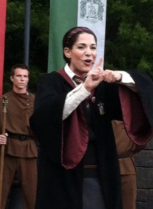 Both schools put on a great show. They would walk from Hogwarts down to the stage, and we got to catch them a few times during the week. We really liked all of the shows we saw throughout the park that week. I think my favorite was the Deathly Hallows/The Tale of the Three Brothers puppet show over in Diagon Alley. We saw that show twice. Great mix of live action and puppetry, and looked a lot like the animation in the Deathly Hallows movie.