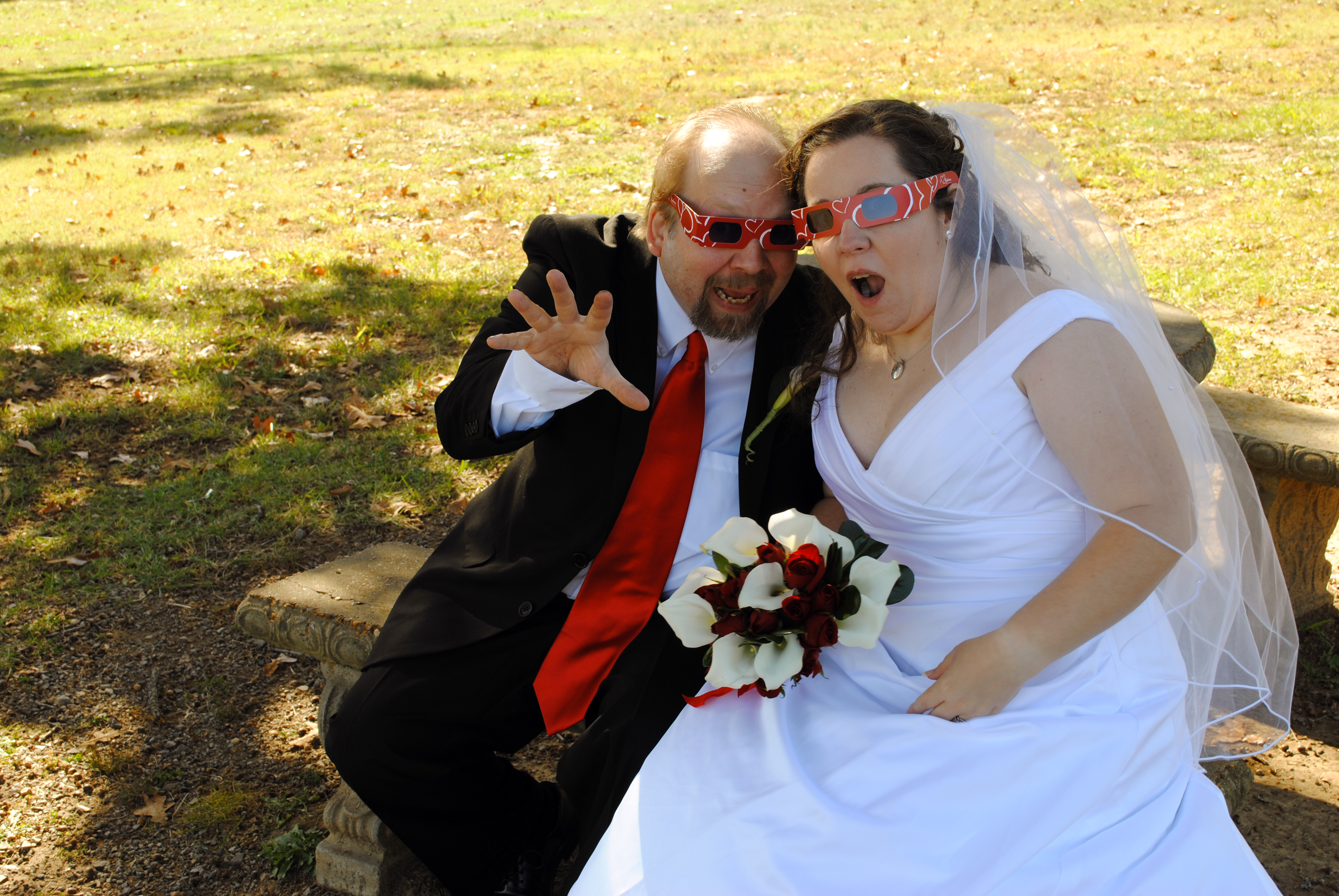 I was able to pick up a copy of The Quibbler from John the owner of APO during my visit to his 3D company- and he gave me some glasses to hand out at mine and Nicki’s wedding! They showed hearts whenever you looked at lights. Actually had some folks ask us what part of the wedding would be in 3D! Actually found out about APO during one of my first trips to Florida and Busch Gardens’ Howl-O-Scream. Was surprised to find out it was just a mile or so up the road from “Stage Fright” the haunt I volunteered at in Bartlett. Small world!