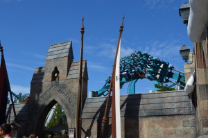 We passed on riding the two roller-coasters in Hogsmeade– Dragon Challenge and The Flight of the Hippogriff. Kind of wished we had at least rode the Hippogriff one. It’s a bit more family friendly, but Nicki’s not a big fan of coasters.