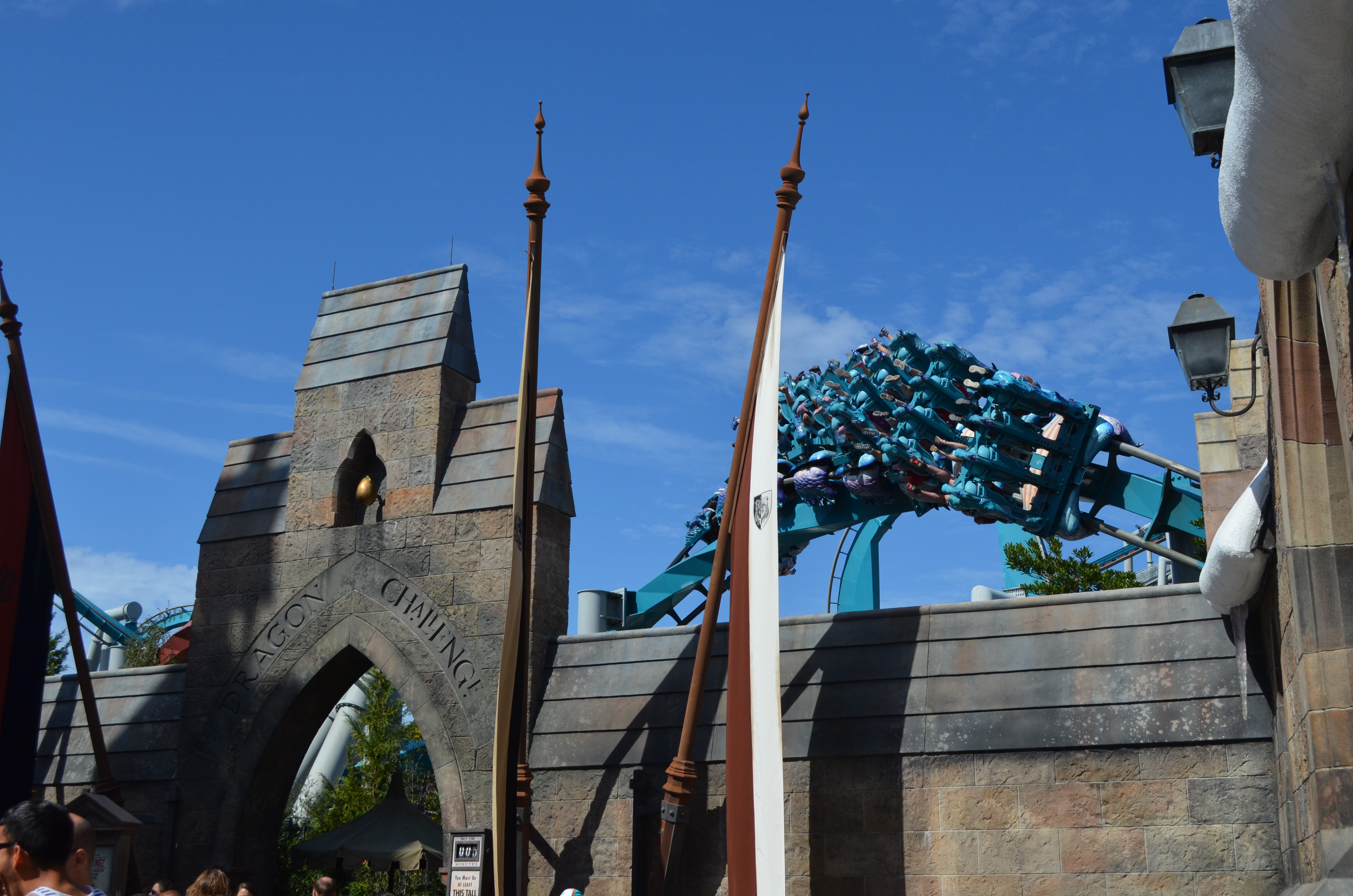Apparently we missed seeing an animatronic hippogriff (Buckbeak) and Hagrid’s hut when entering the ride, and we also missed walking through the champion’s tent before the Dragon Challenge.