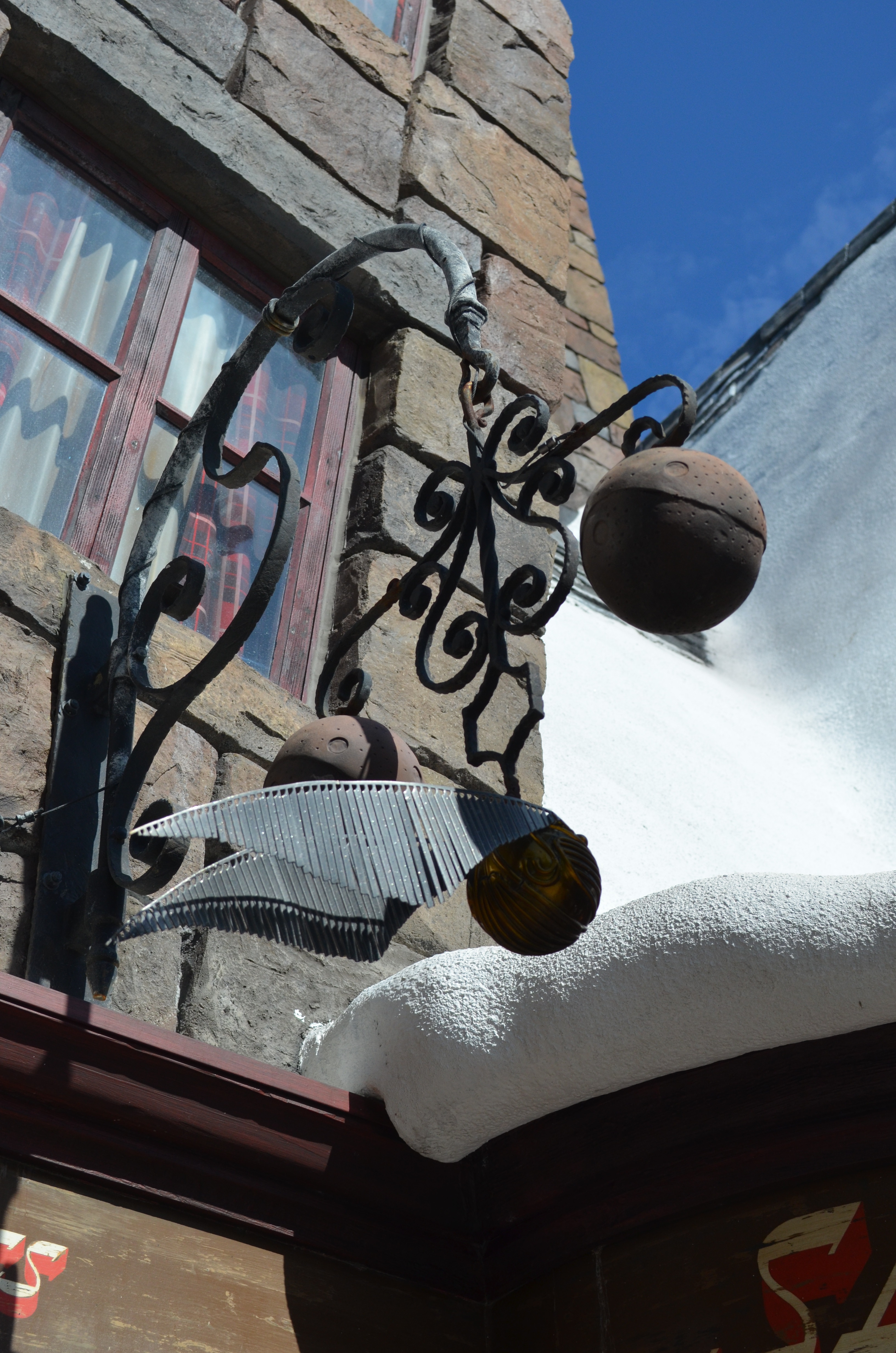 I hate to use the word “magical” to describe walking into Hogsmeade for the first time, but that’s exactly how it felt. Snow covered roofs lined both sides of the streets. It wasn’t too cold outside, but there were a few times it did get a bit chilly in the shade when overcast. People filled the narrow streets. We were there the first week of November – can’t imagine what this place is like at the height of the peak season!
