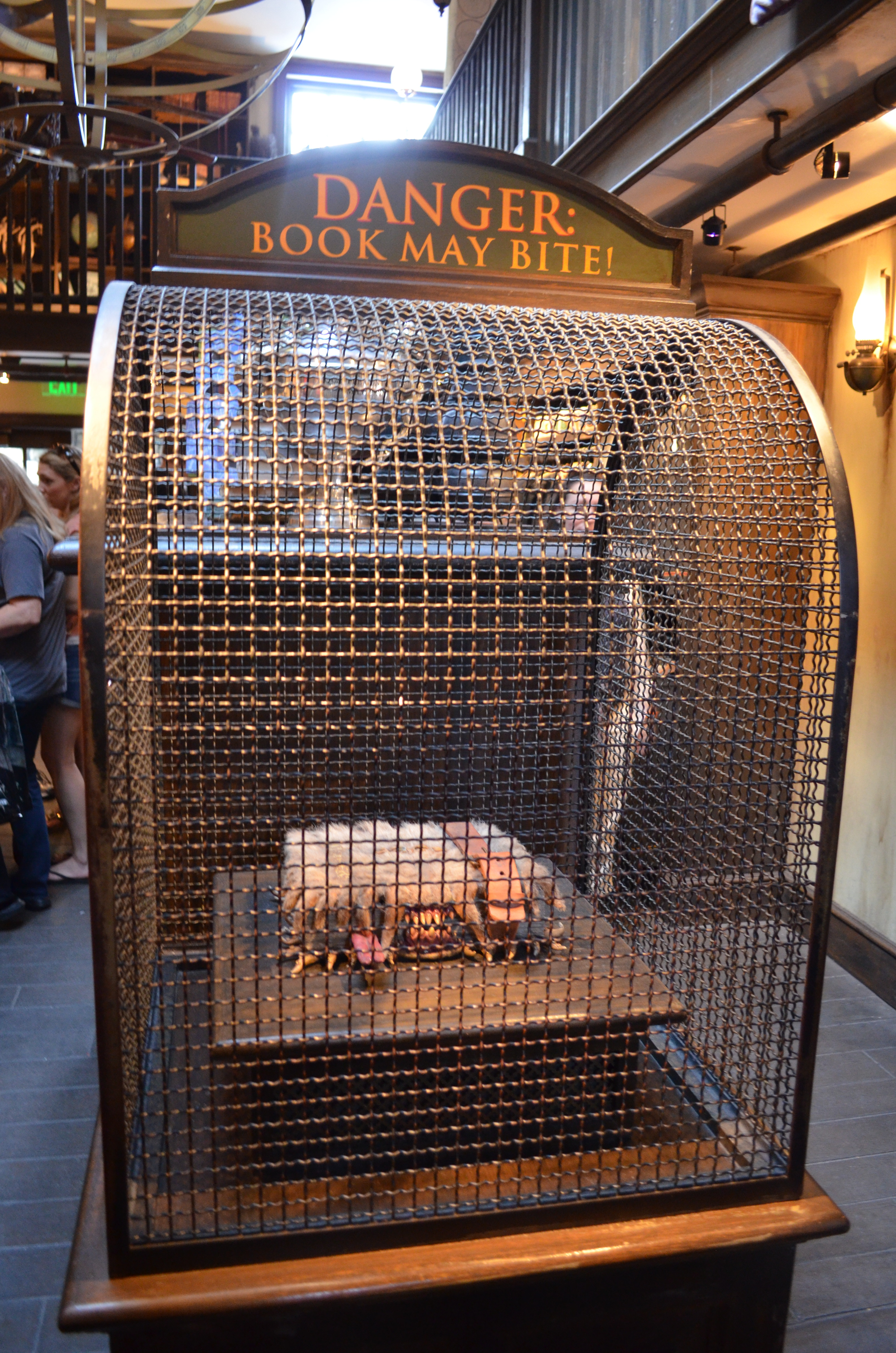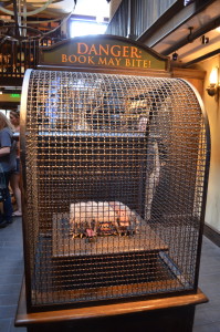 I loved shopping and exploring the inside of the Harry Potter stores we got a chance to enter. You could actually mail off letters at the Owl Post with official Harry Potter stamps and Hogsmeade postmarks. I bought Nicki a set of the stamps. This beastly book was quite hilarious when kids or others would pass by that weren’t paying attention. It was was inside a cage for a reason!